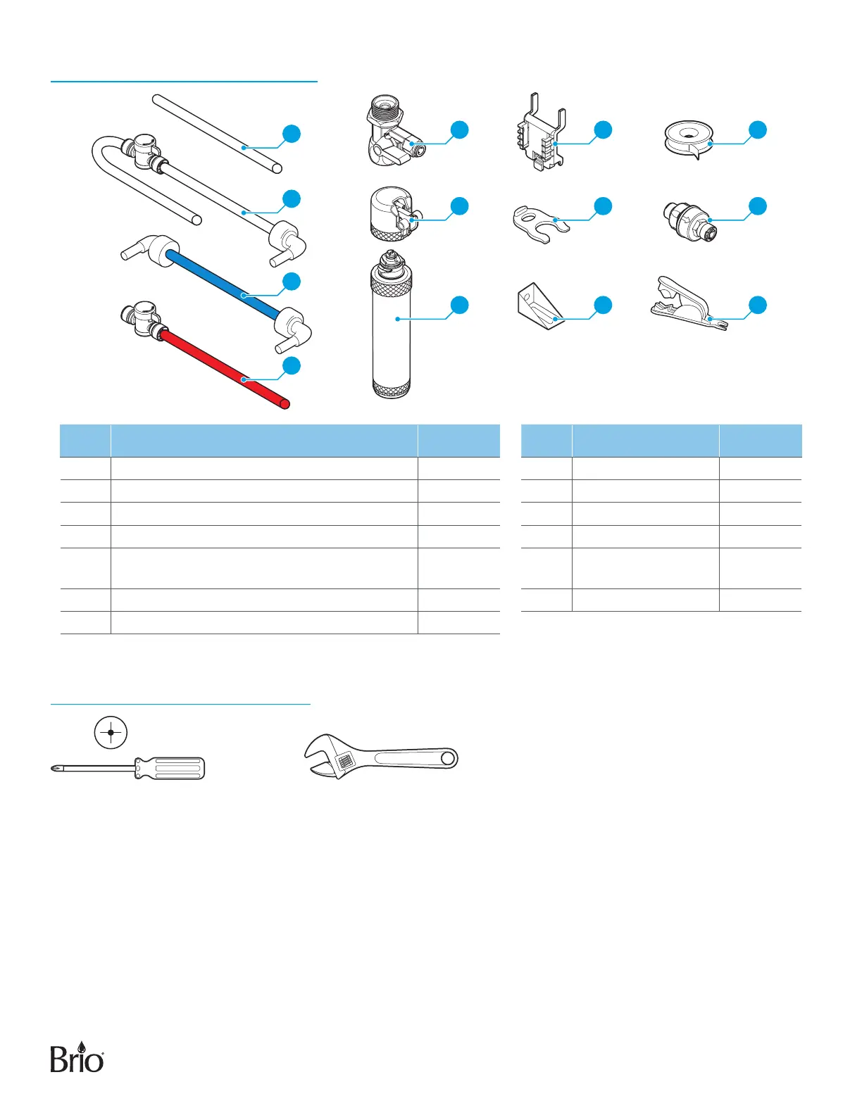 D Filter flushing tube (4 ft.) 1 K Plumber’s tape 1