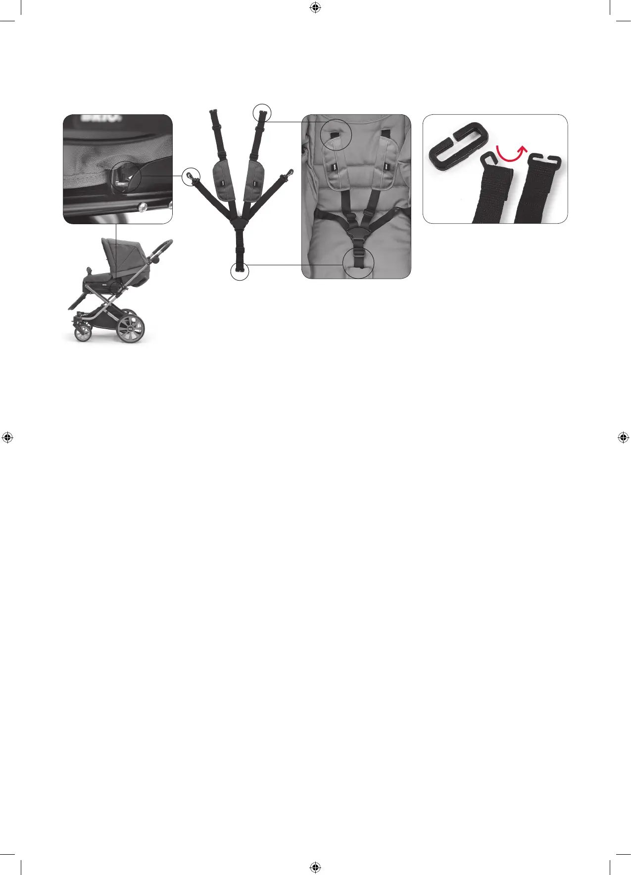 crotch straps should be fed through the seat unit cover and the