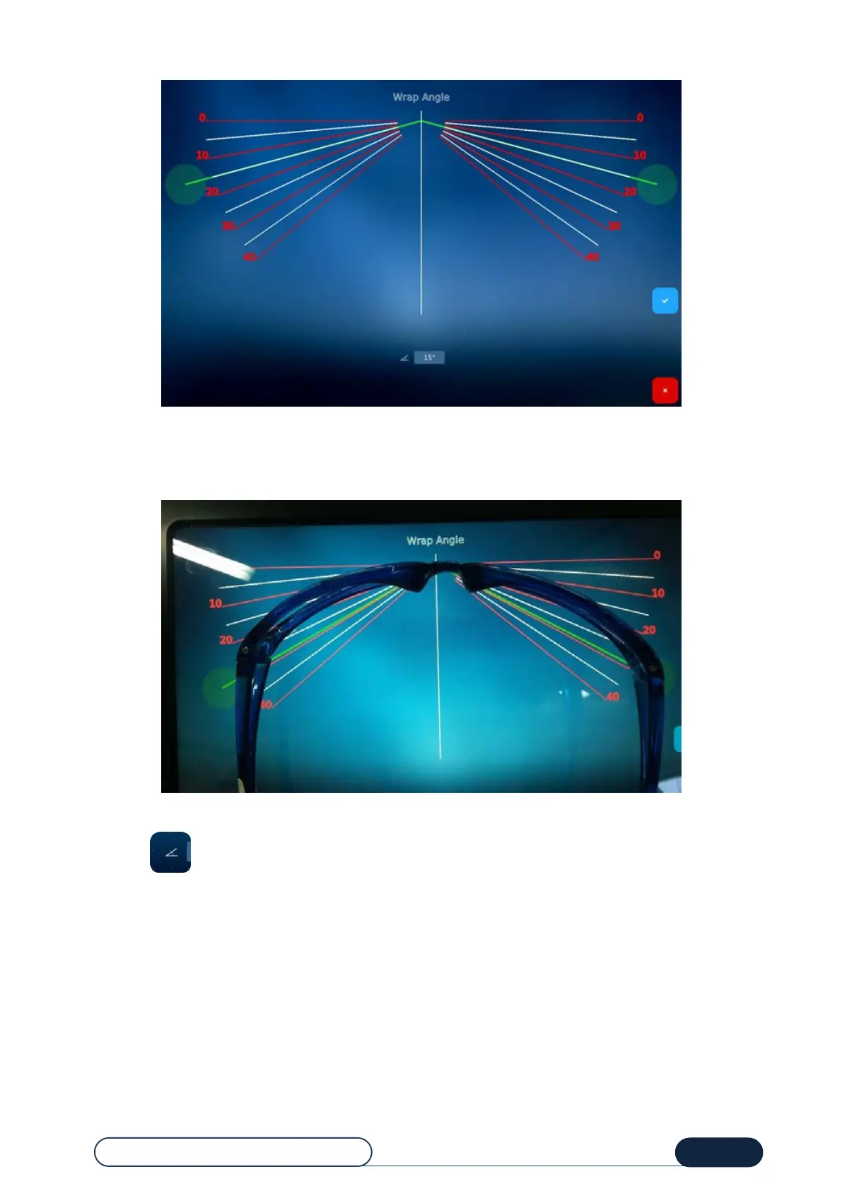 Superimpose the frame on the screen (as indicated in the image below), to view and input the Z-Tilt angle of the frame.