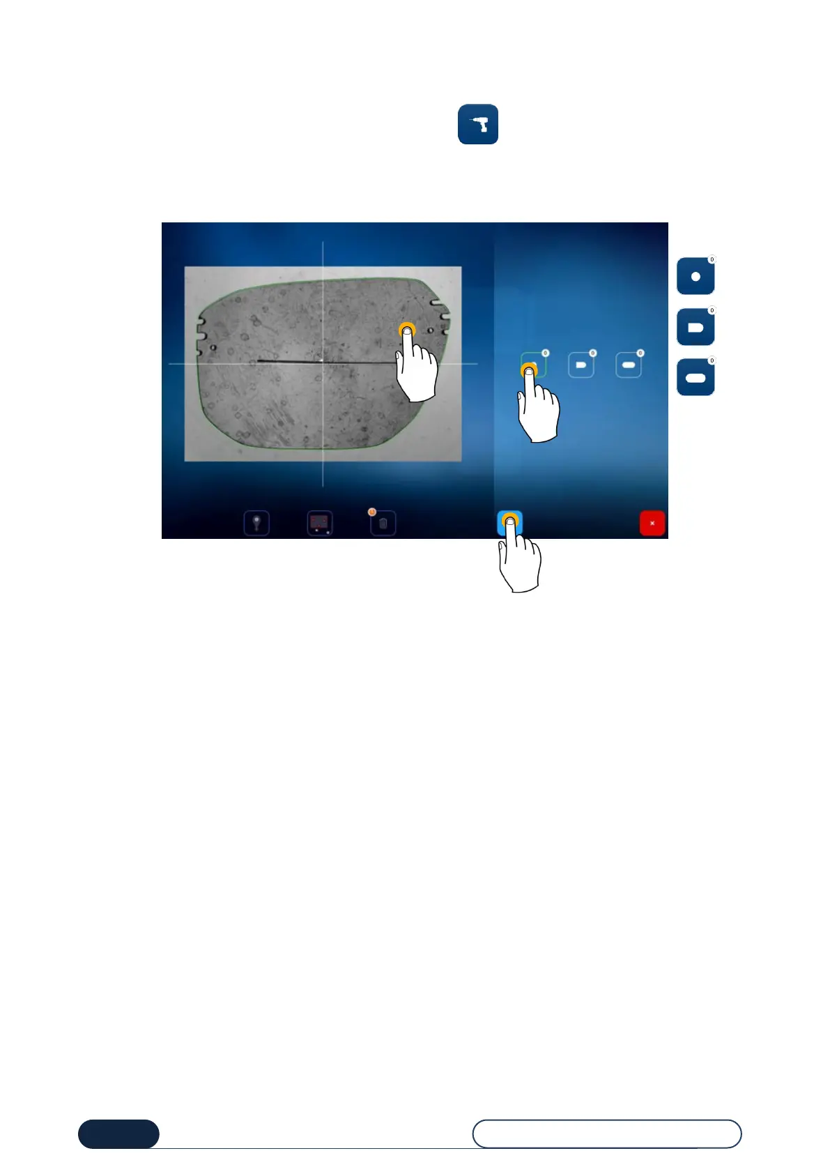 From one of the two main screens (entry or centering), press the button to be redirected to the screen below.
