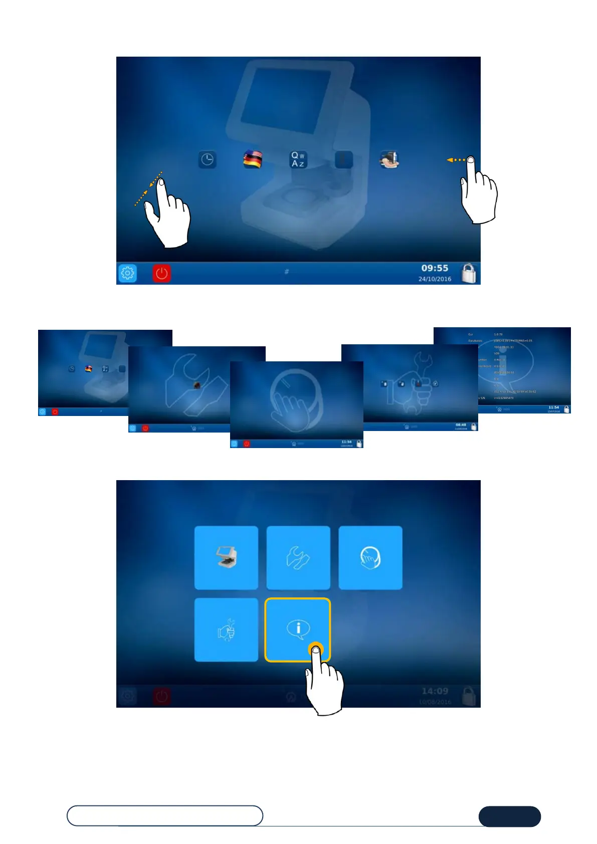 You can also access a screen containing the machine's settings by pinching the screen (2).