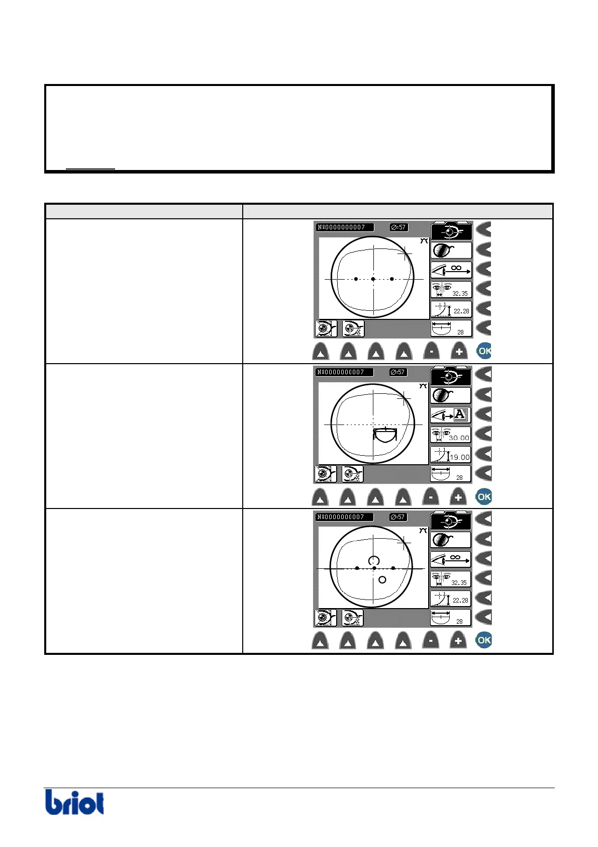 • Visually inspect the lens shape on the screen, under the lens blank to verify the lens blank