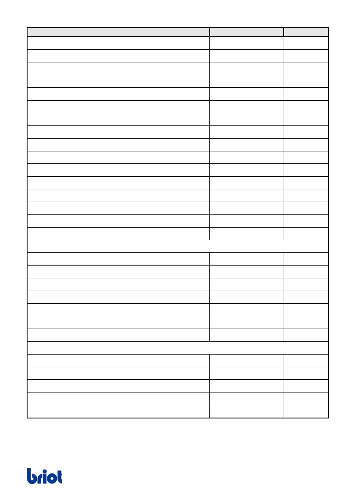 Accessory Briot Part Num. Quantity