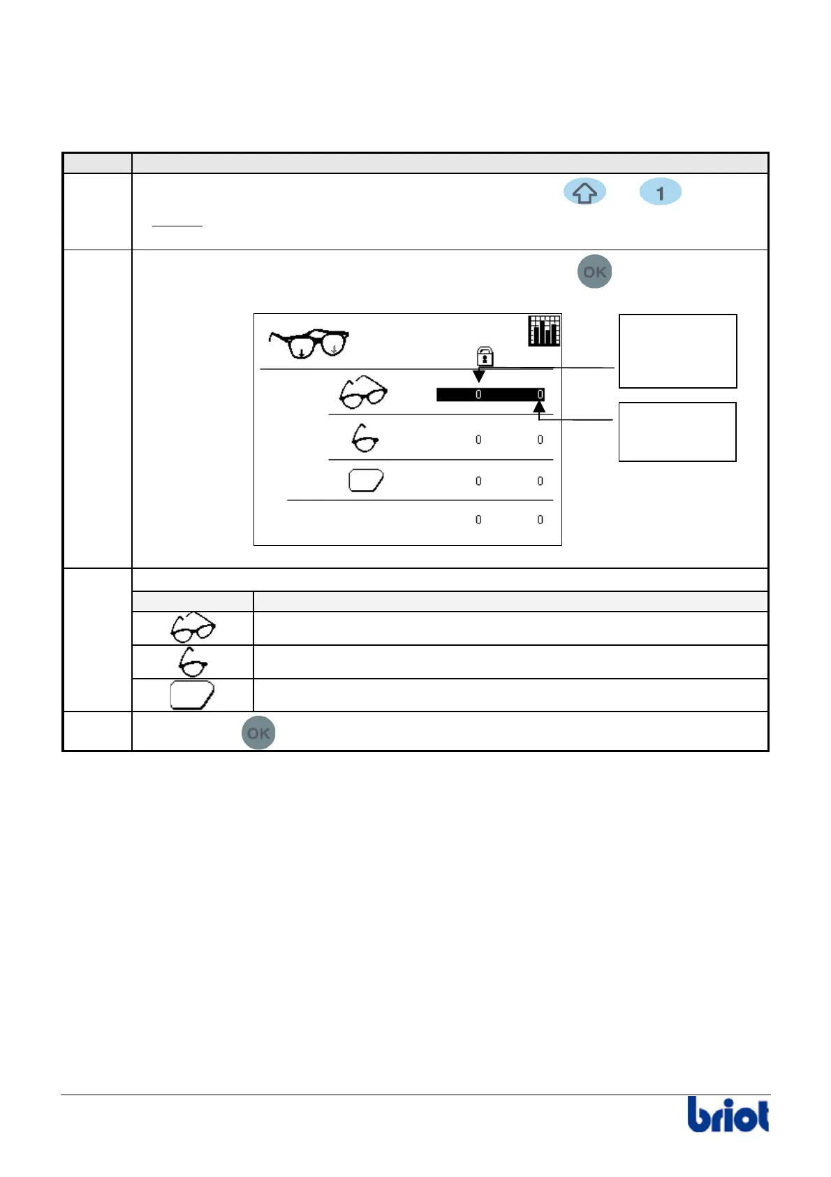 the first statistics screen is displayed (refer to the paragraph lens counters