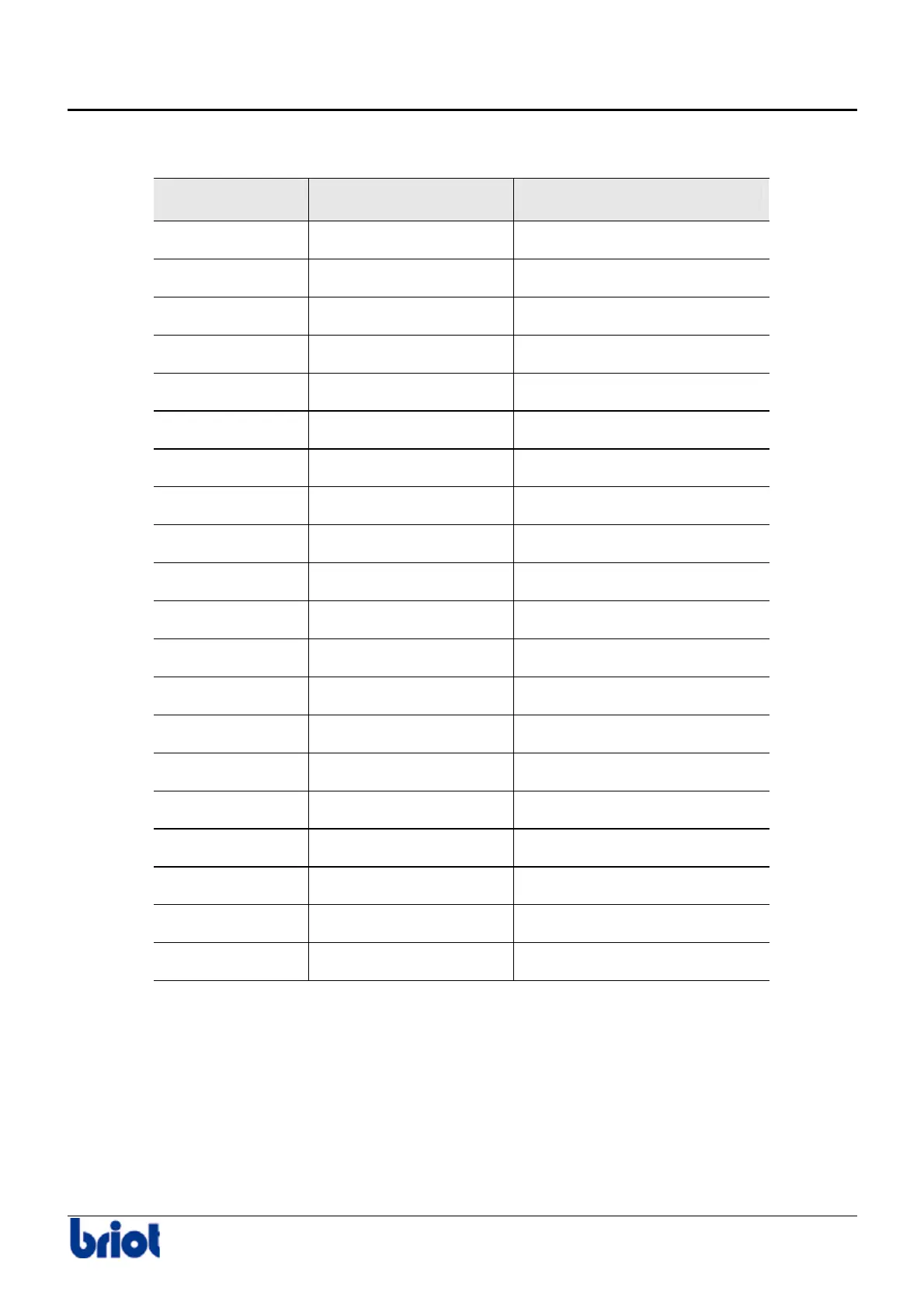 At each client visit, the Briot technician is asked to write in the following table.