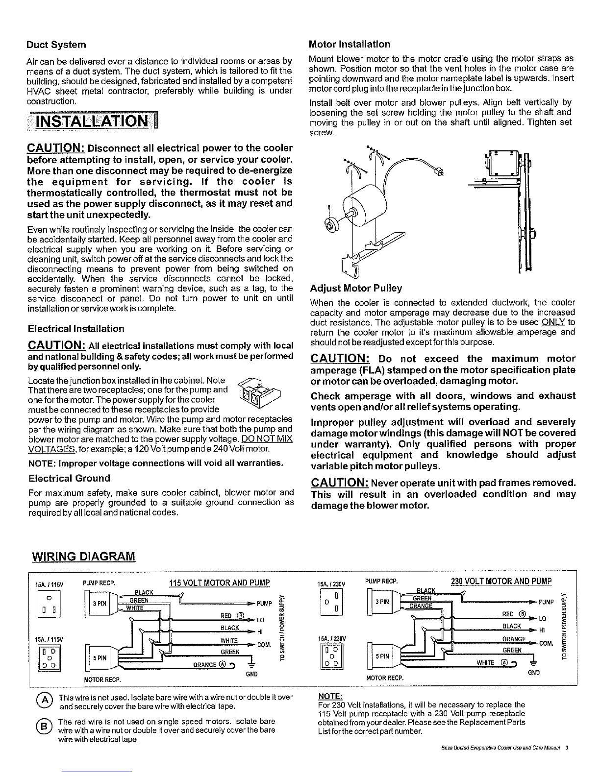 Brisa BD3000 - INSTALLATION; Electrical Installation; Electrical Ground; Motor Installation