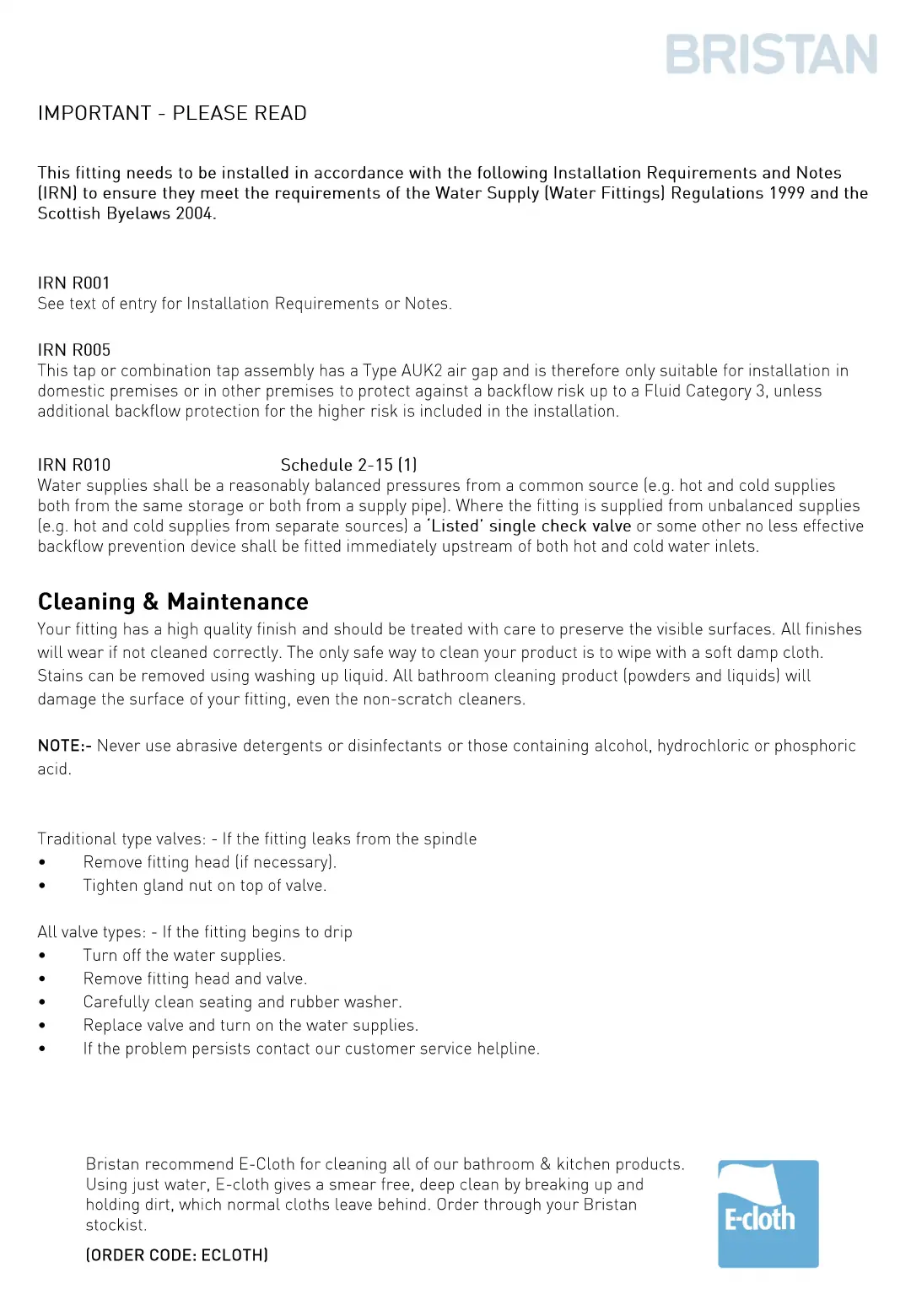 leave behind. Order through your Bristan