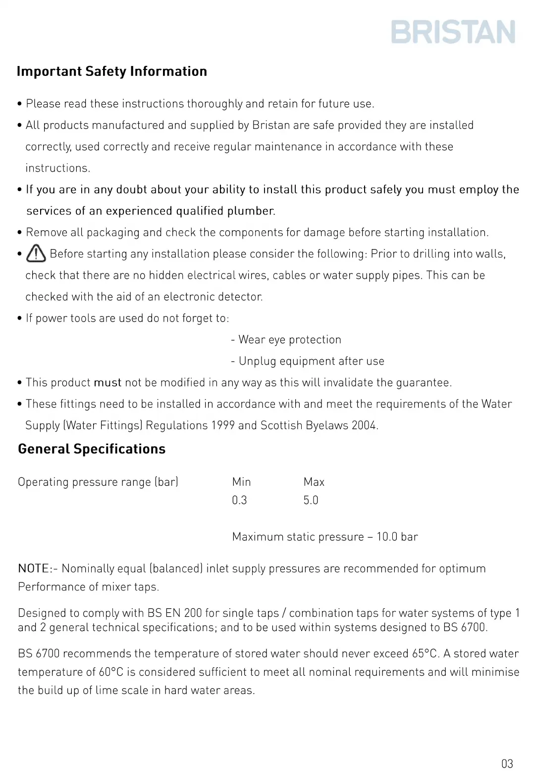 Supply [Water Fittings] Regulations 1999 and Scottish Byelaws 2004.