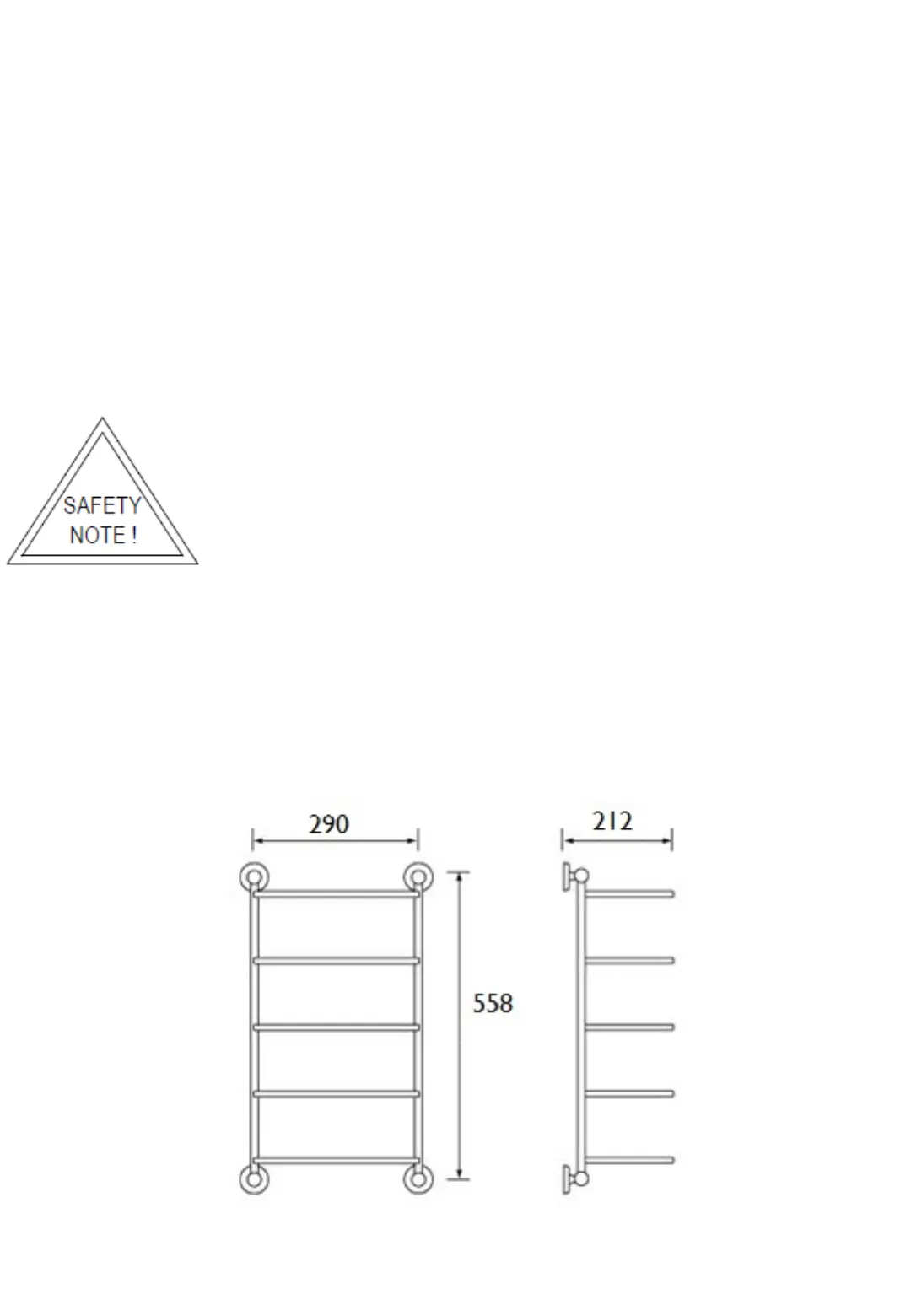 2. Screw towel stacker to the wall using the fixing screws (5) supplied.