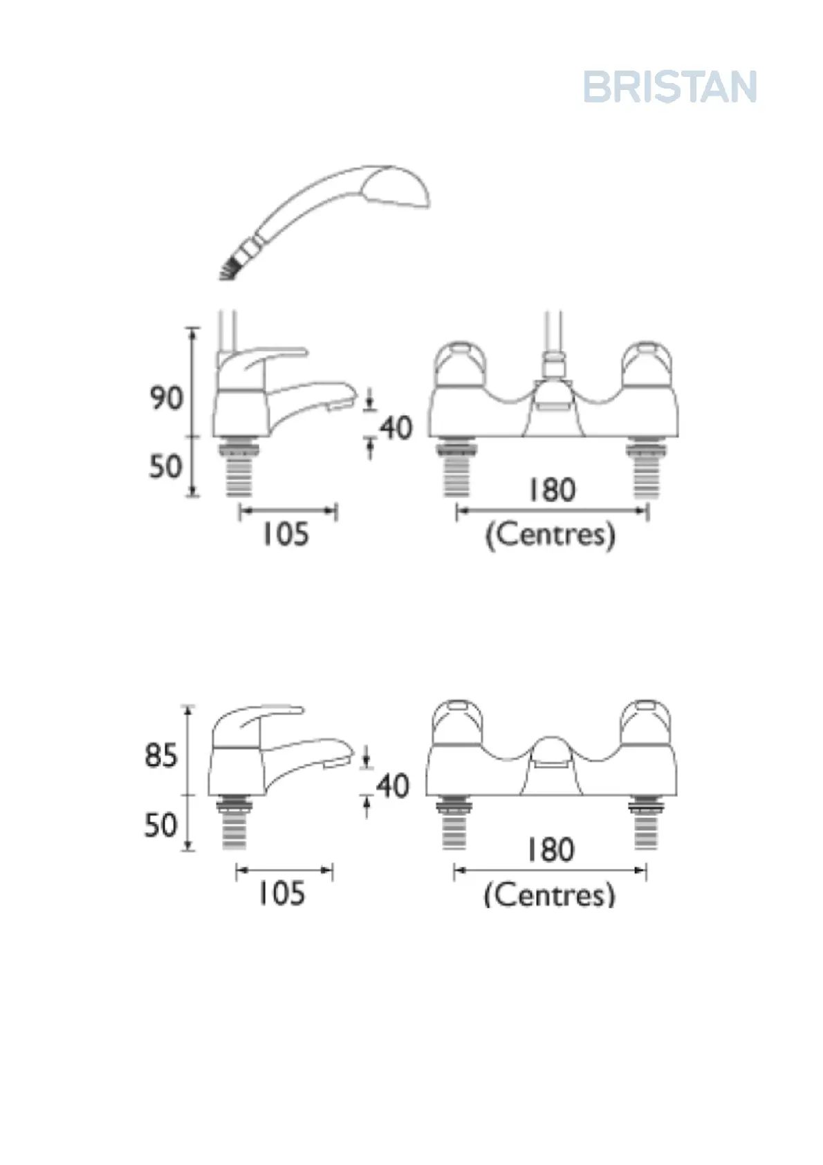 Bristan Java Series - Bath Filler and Mixer Dimensions