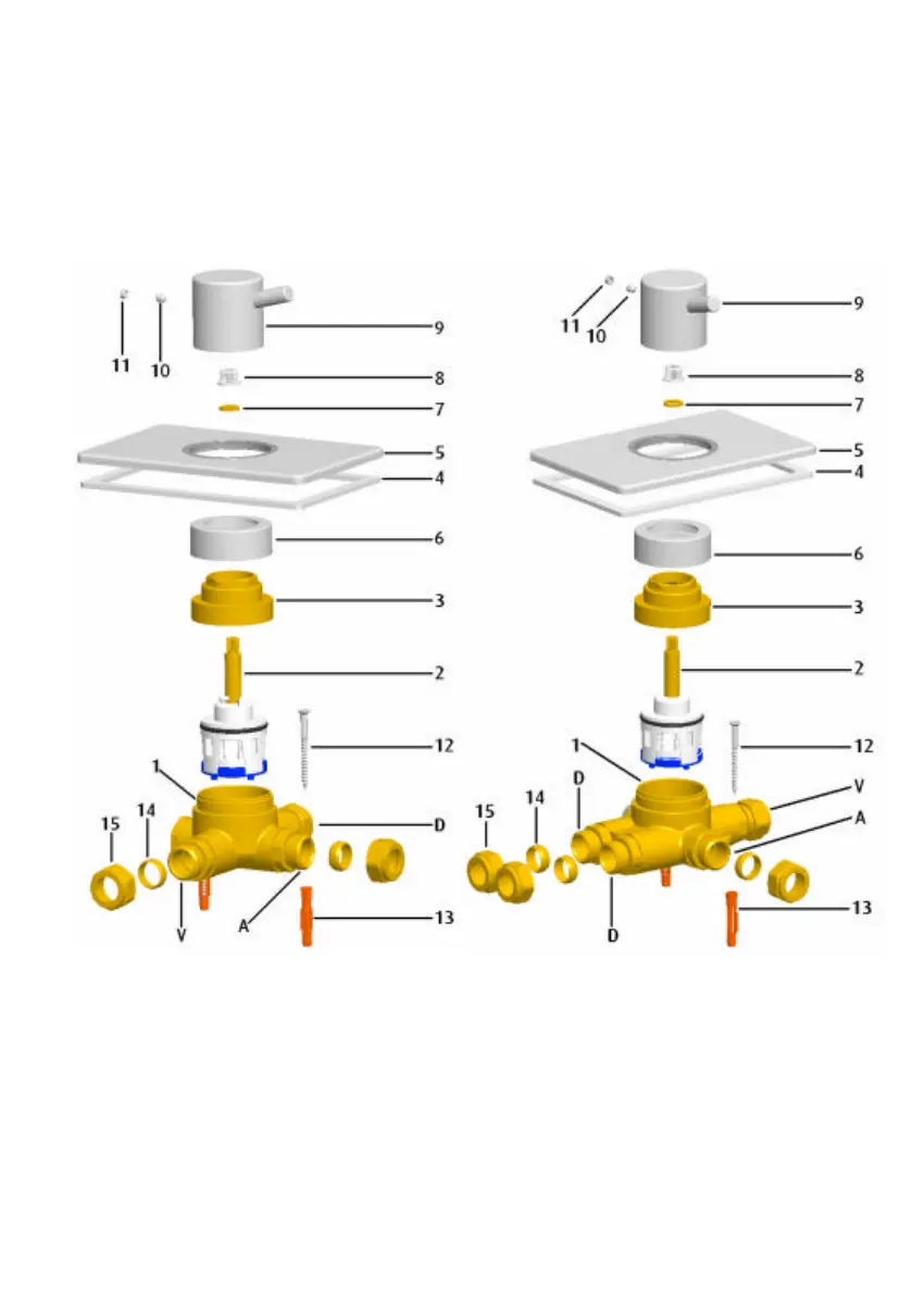 4. Re-assemble and replace the concealing, shroud (6), pate (5) and handle (9) and test.