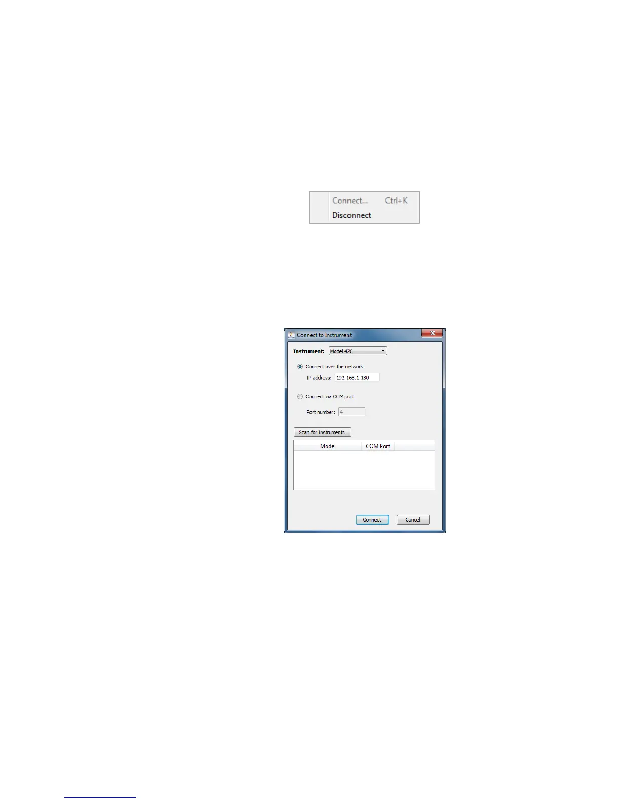 Ethernet interface. Click on Connect and choose between “Connect via COM port” or