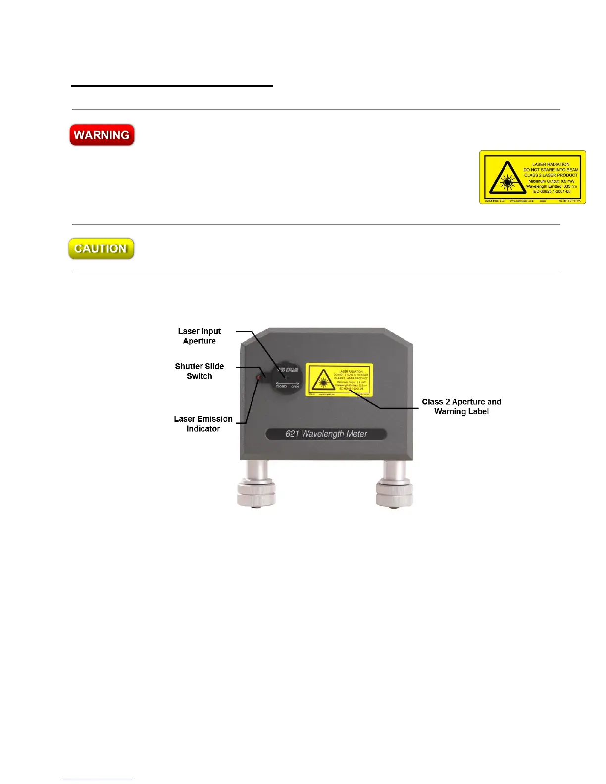 This instrument is a Class 2 Laser Product. It contains a laser that emits radiation