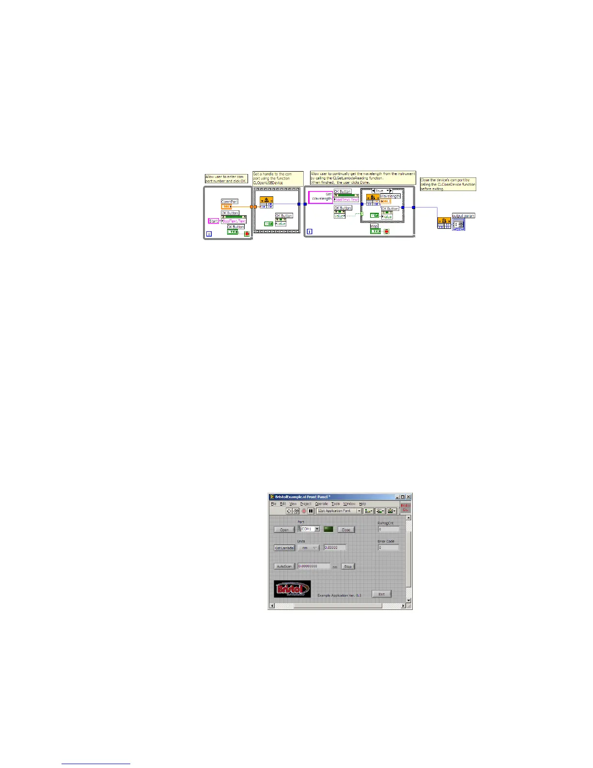 nodes together. The sample .vi getWavelength_v80.vi (Figure 6.2) opens the serial