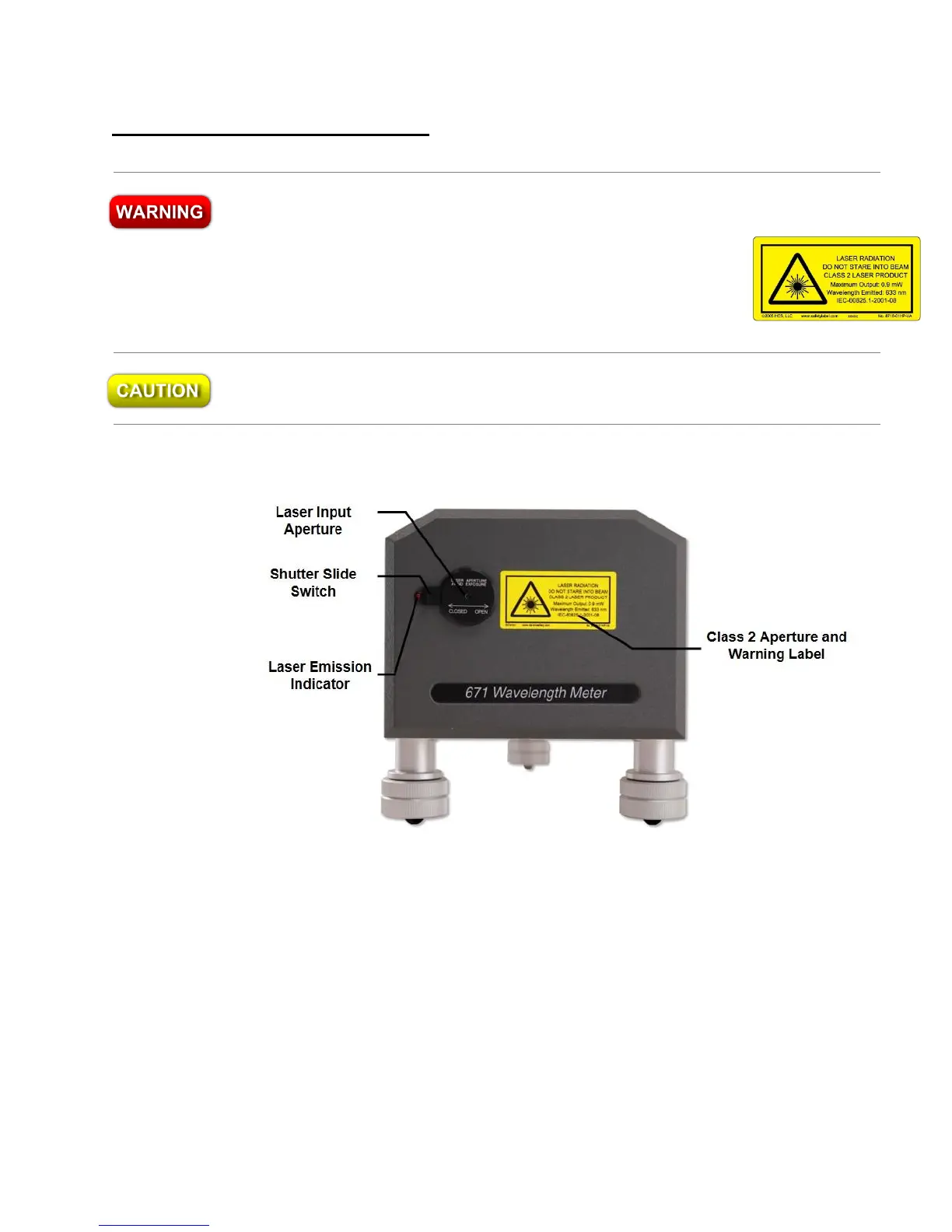 This instrument is a Class 2 Laser Product. It contains a laser that emits radiation