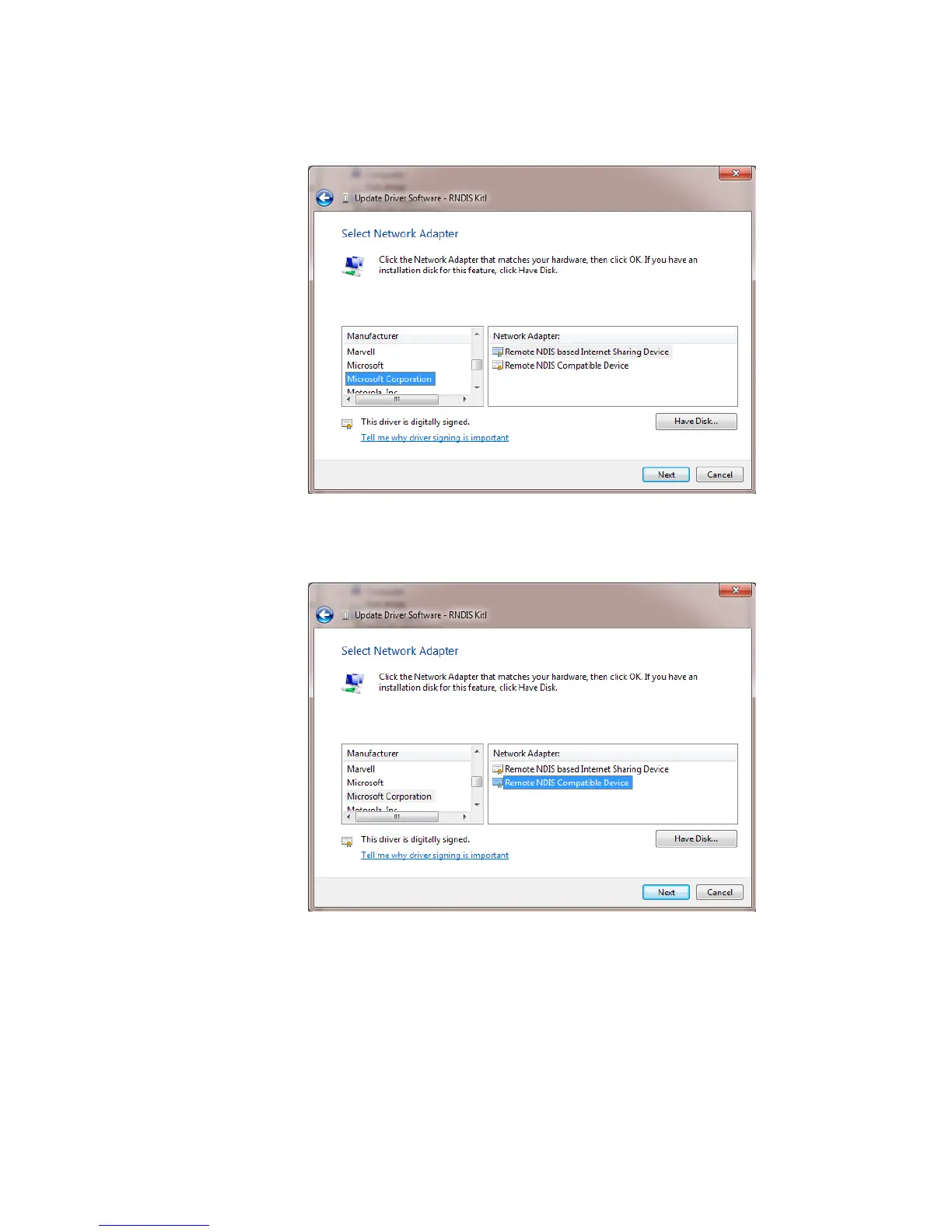 5 Then select: "Remote NDIS Compatible Device" as shown below and click “Next”.