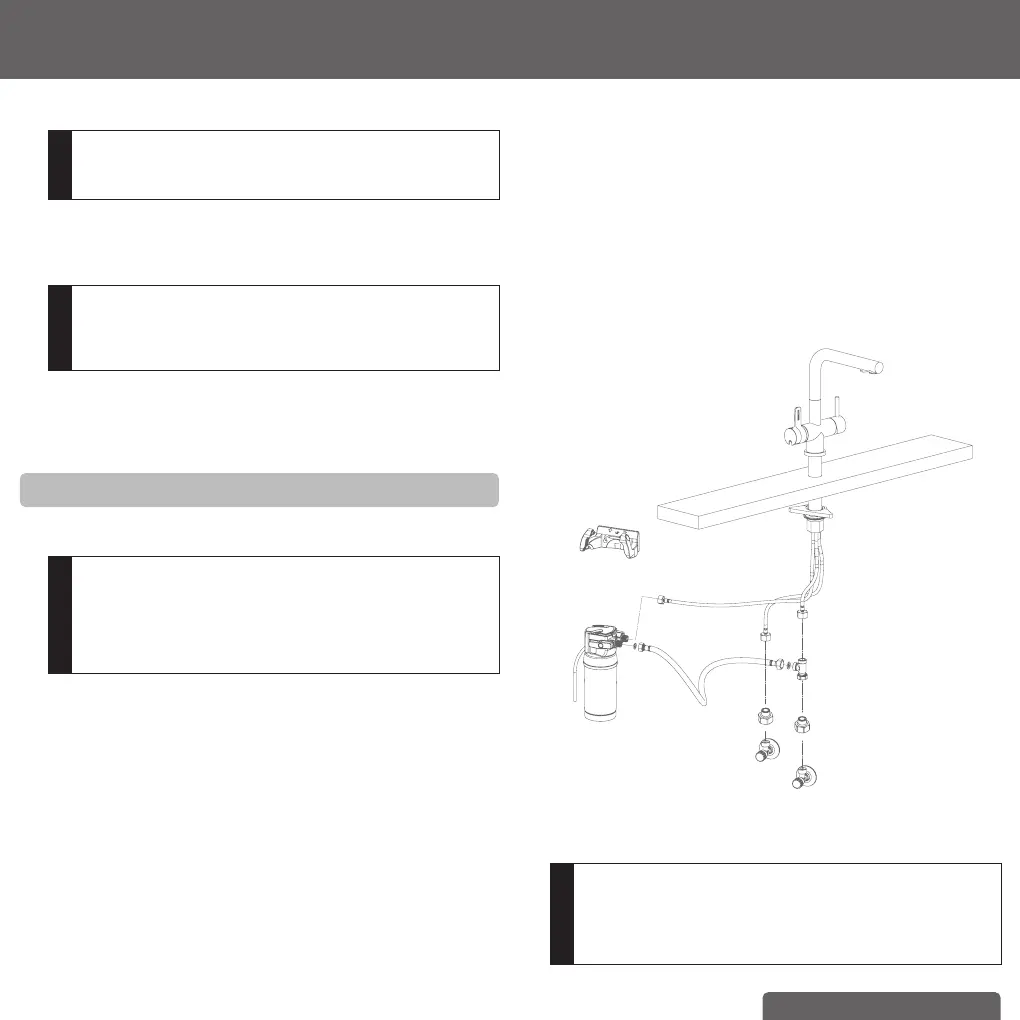 f) Inserisci il filtro per rubinetto dell’acqua a 3 stadi nel foro da