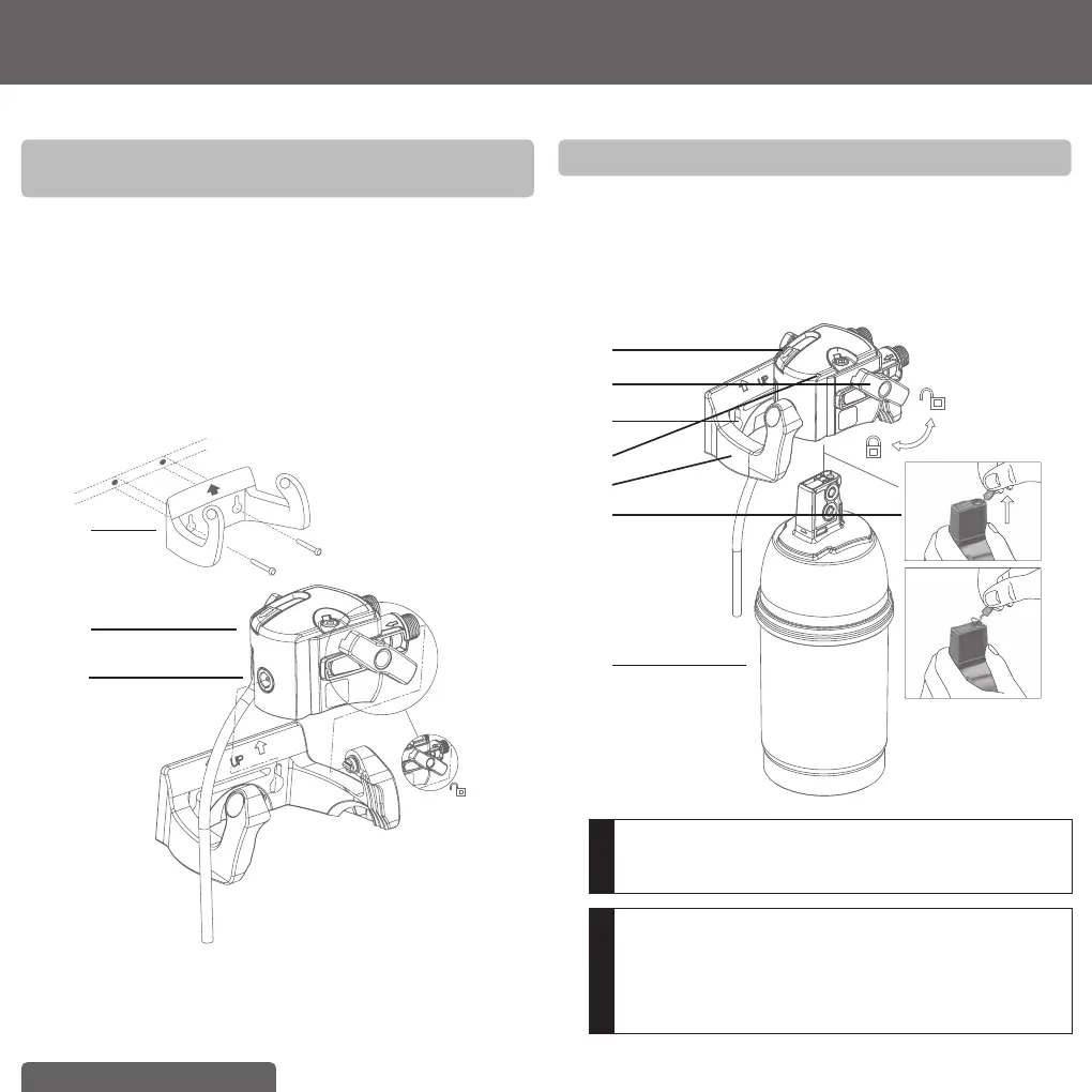 D Installa la testa del filtro (5) nel supporto a parete (6). Utilizza i fori