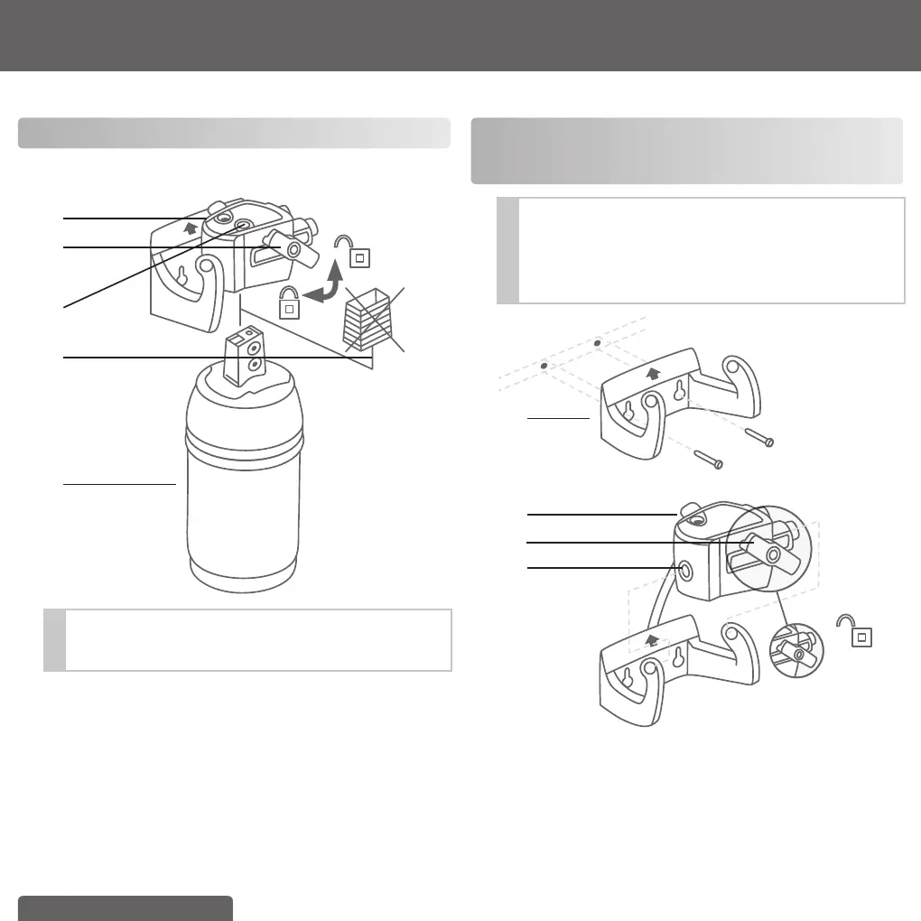 B Steek de filterkop (2) in de muursteun (1). Gebruik de bevesti-