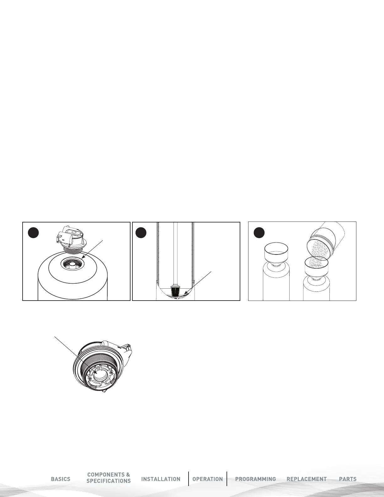 the inlet and outlet. Then unscrew the head from the fibreglass tank. Once this has been done, remove the distributor tube. Then you