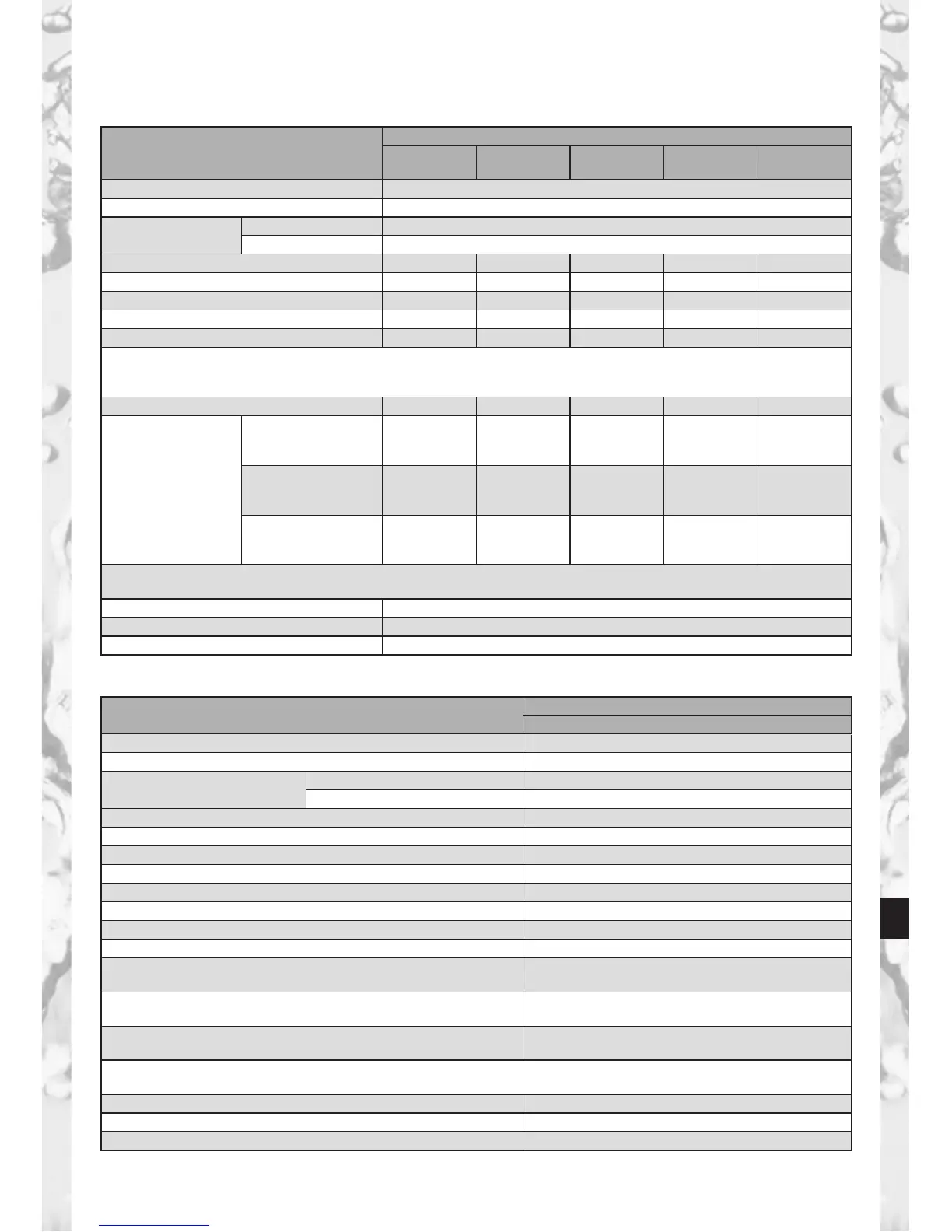 Vægt (tør/våd) 0,9 kg/1,2 kg 1,0 kg/1,4 kg 1,7 kg/2,5 kg 2,7 kg/3,9 kg 4,6 kg/7,1 kg
