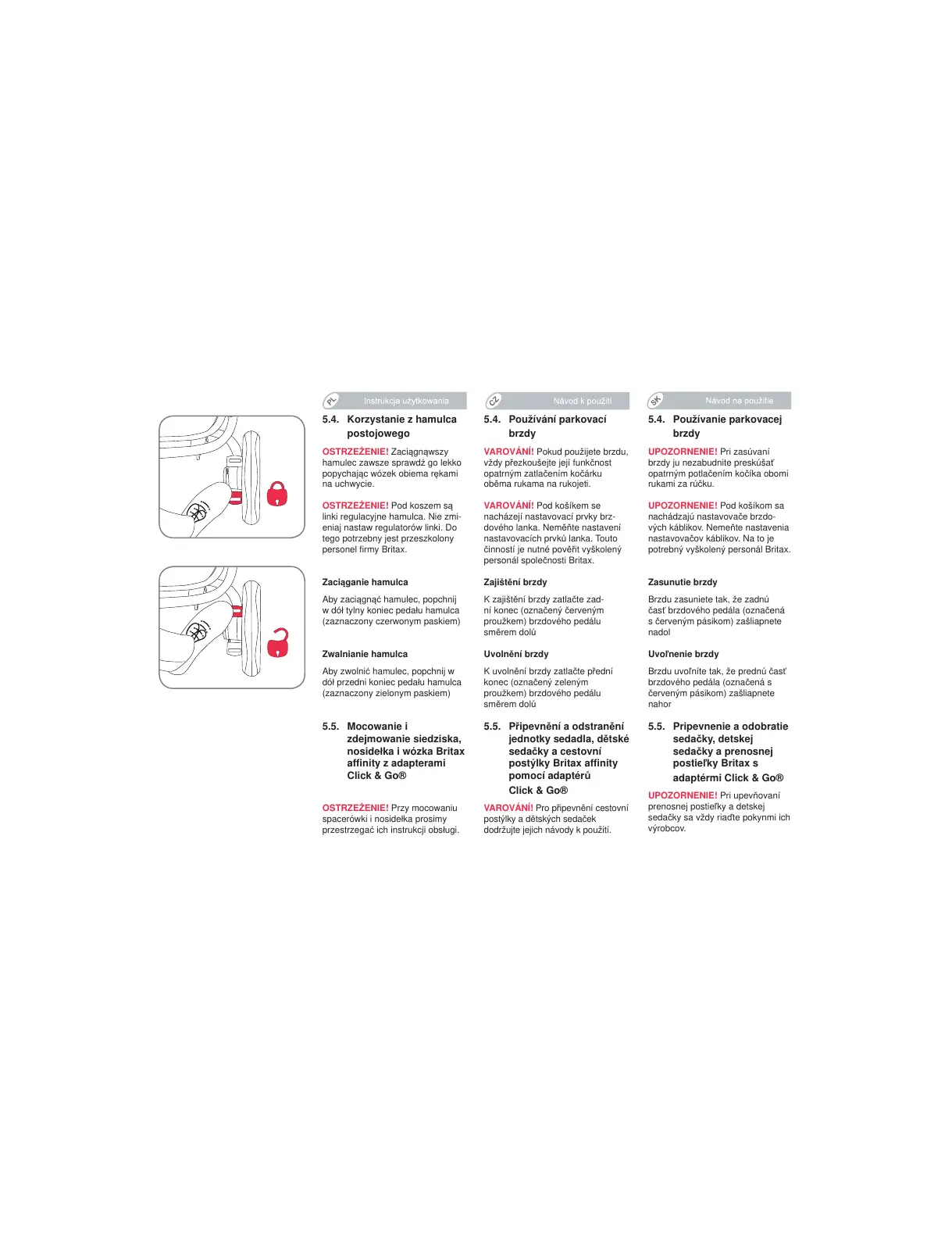 VAROVÁNÍ! Pokud použijete brzdu,