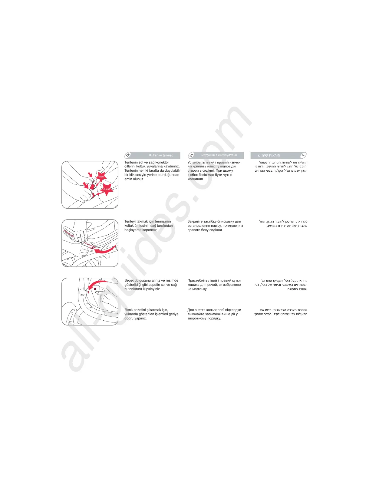 dillerini koltuk yuvalarına kaydırınız.