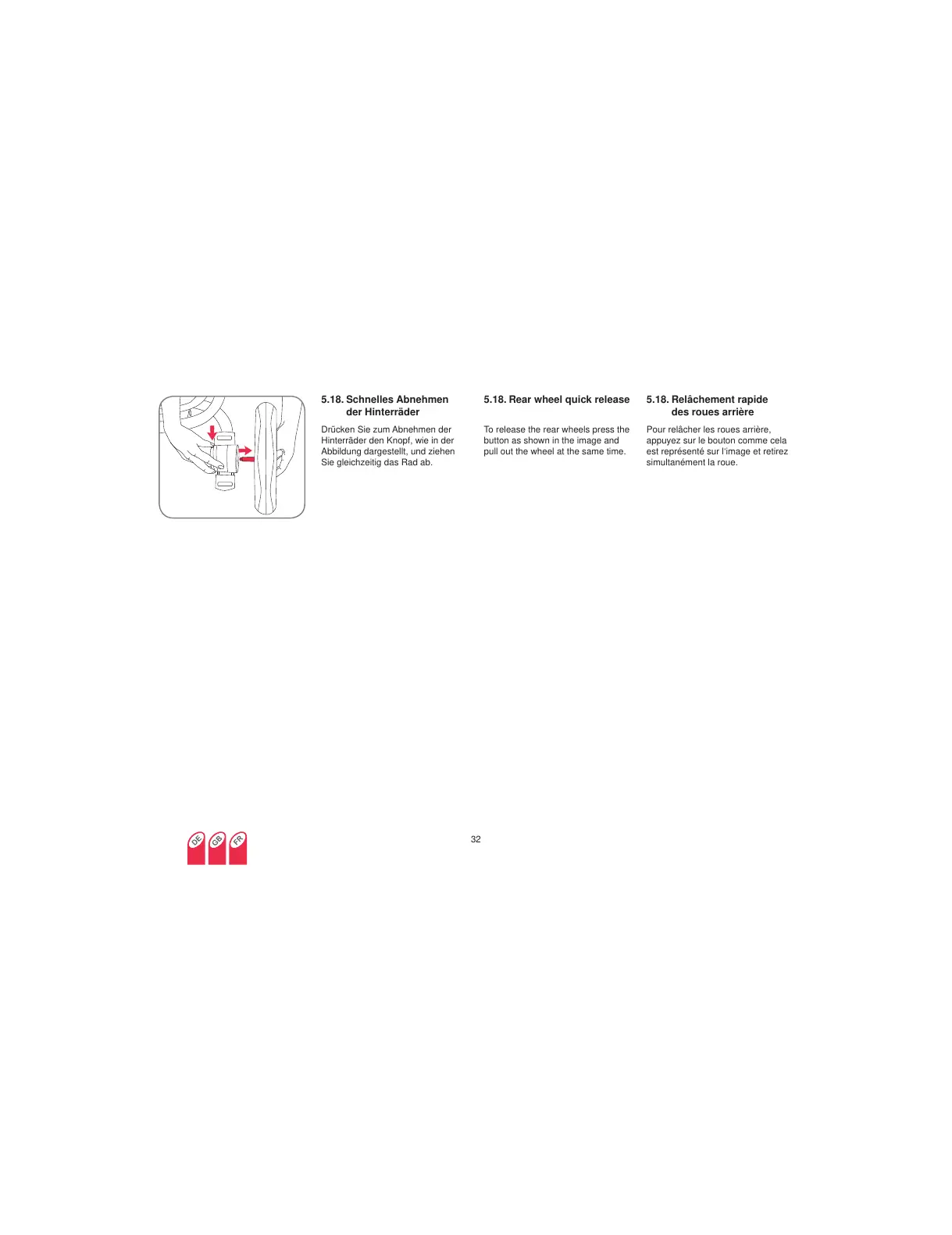 To release the rear wheels press the