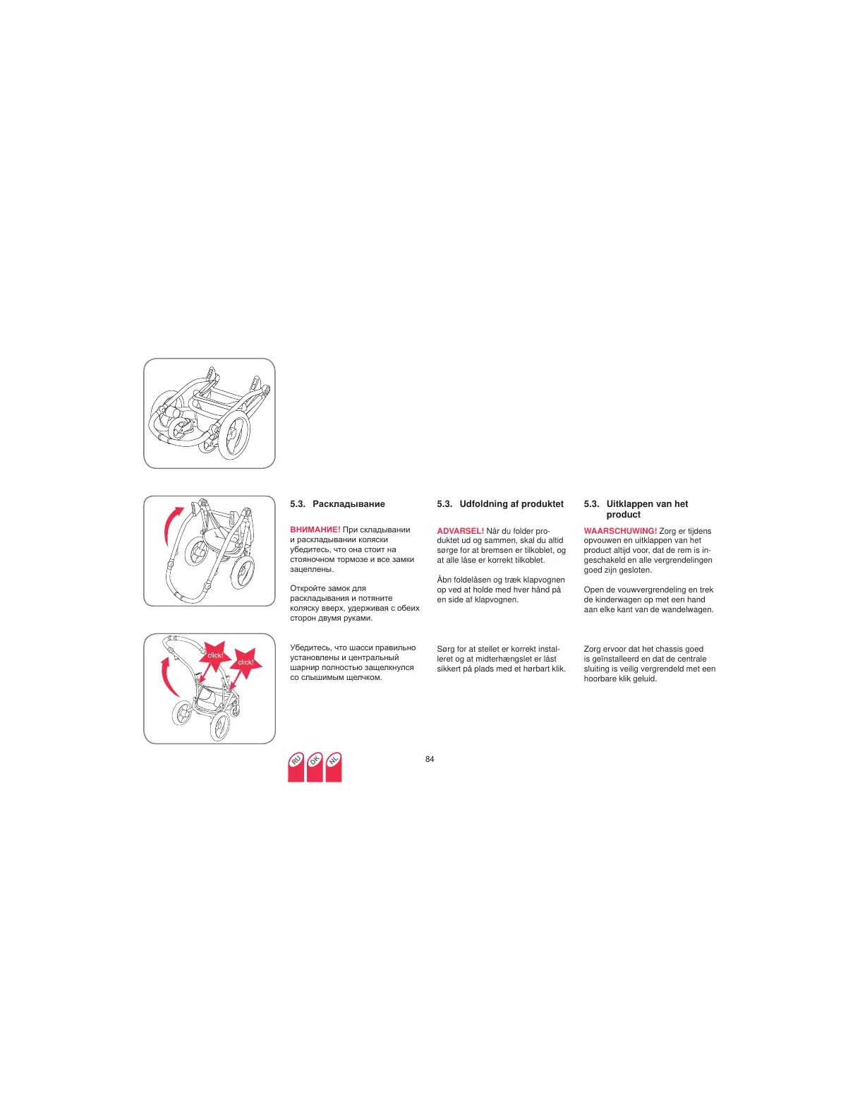 Åbn foldelåsen og træk klapvognen