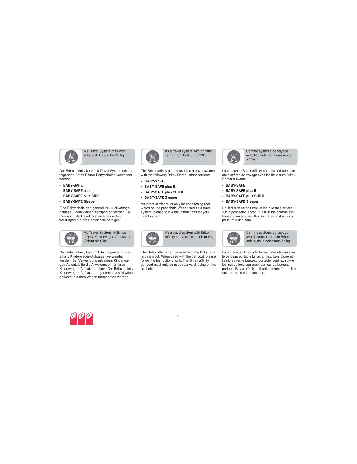 Der Britax affi nity kann mit den folgenden Britax