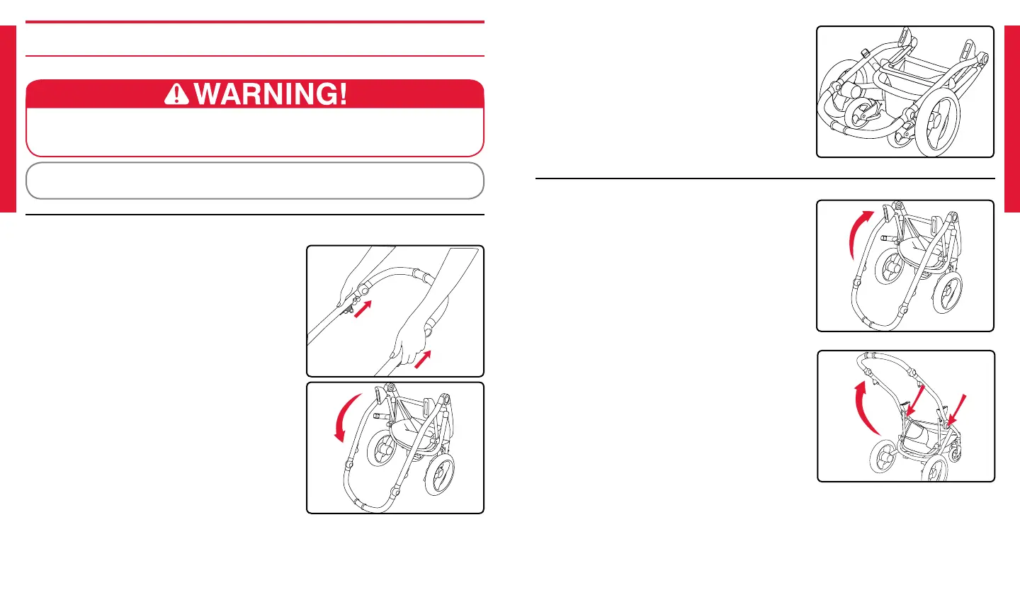• Do not fold or unfold when a child is in or near the stroller.