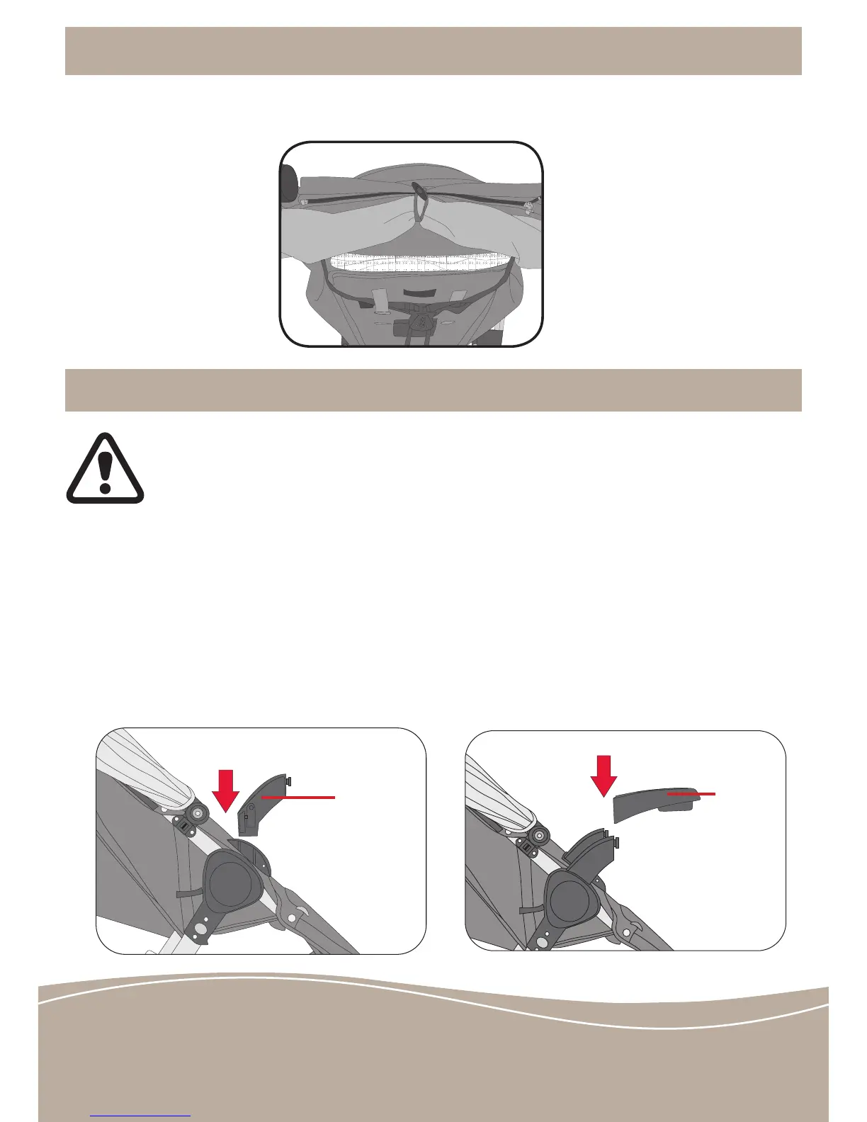 expose the stroller hinge. Take one chld tray adapter at a time & insert the adaptor
