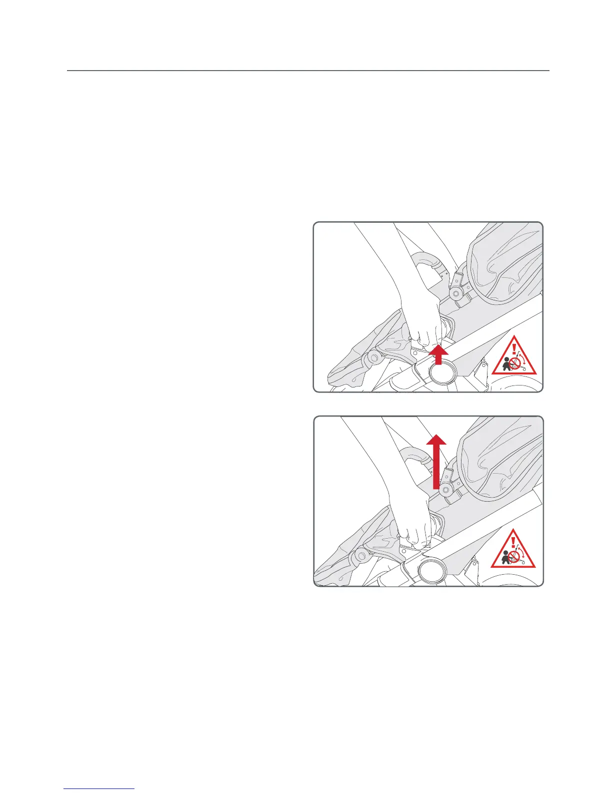 ALWAYS REMOVE YOUR CHILD FROM THE STROLLER SEAT BEFORE