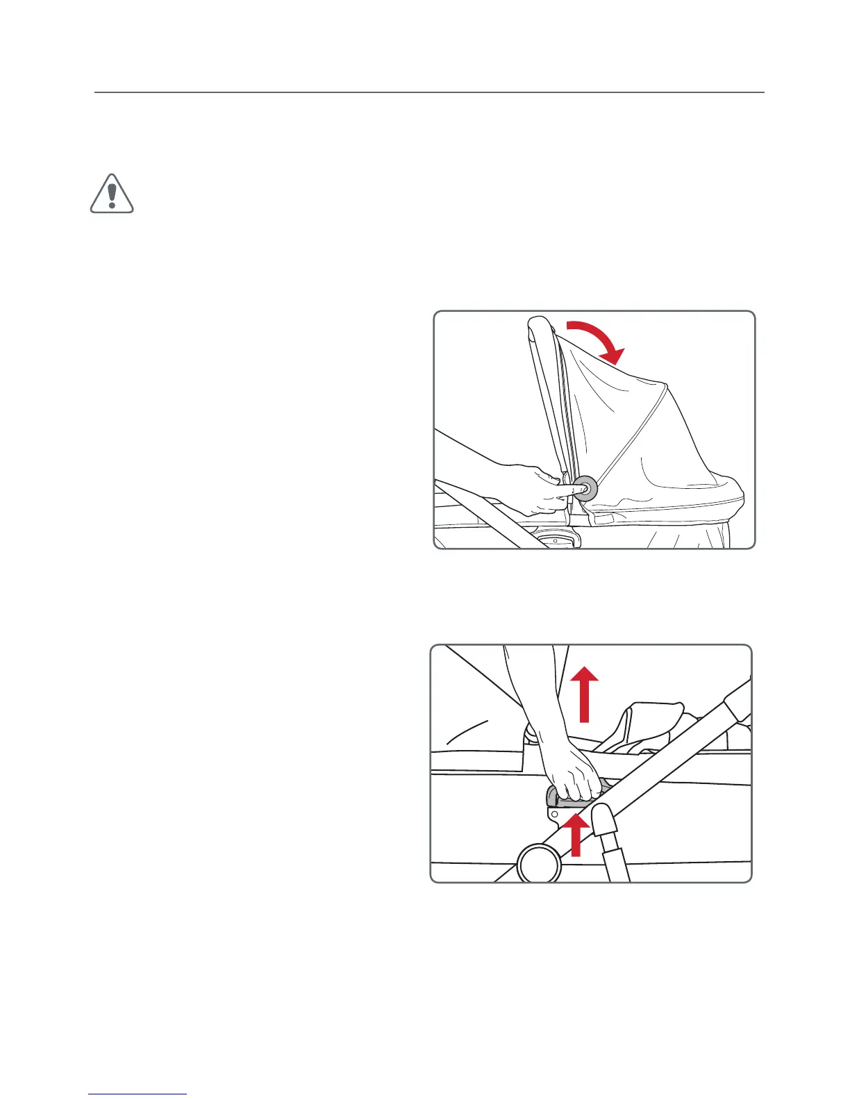 ONLY USE THE CARRY HANDLE WHEN THE CANOPY IS IN THE FULLY