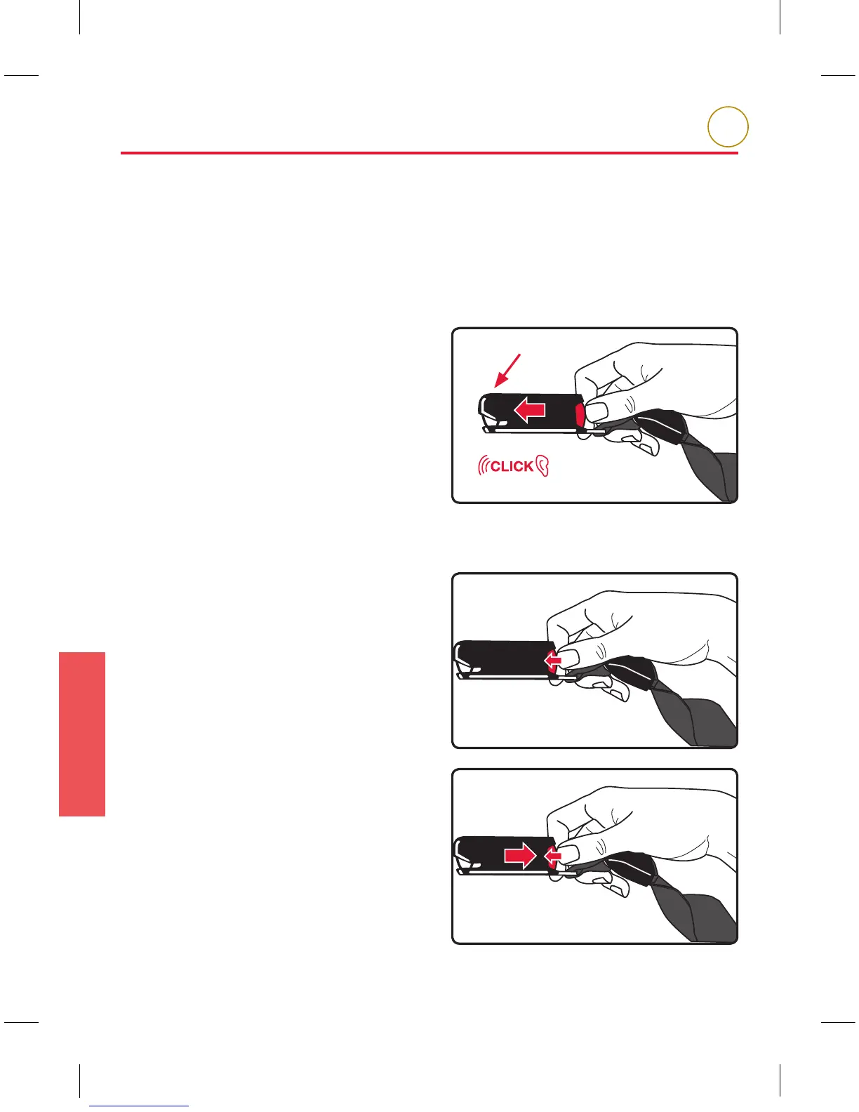 1� Press and hold the red