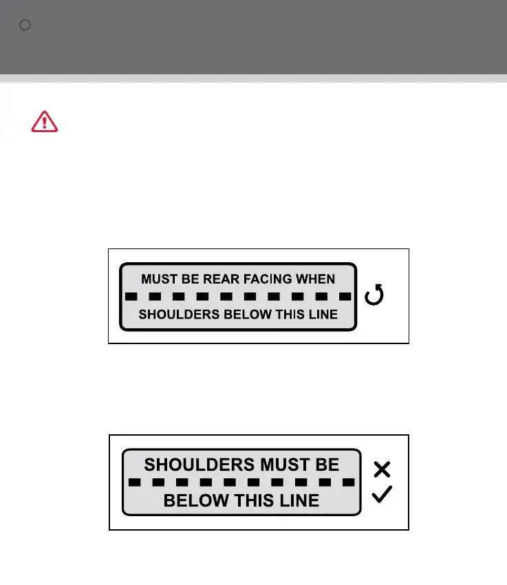 When the child's shoulders reach the lower marker, the child restraint must be turned to face towards the