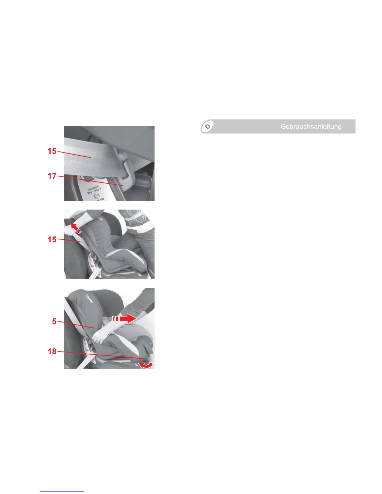 Vorsicht! Der Diagonalgurt 15 darf nur mit der