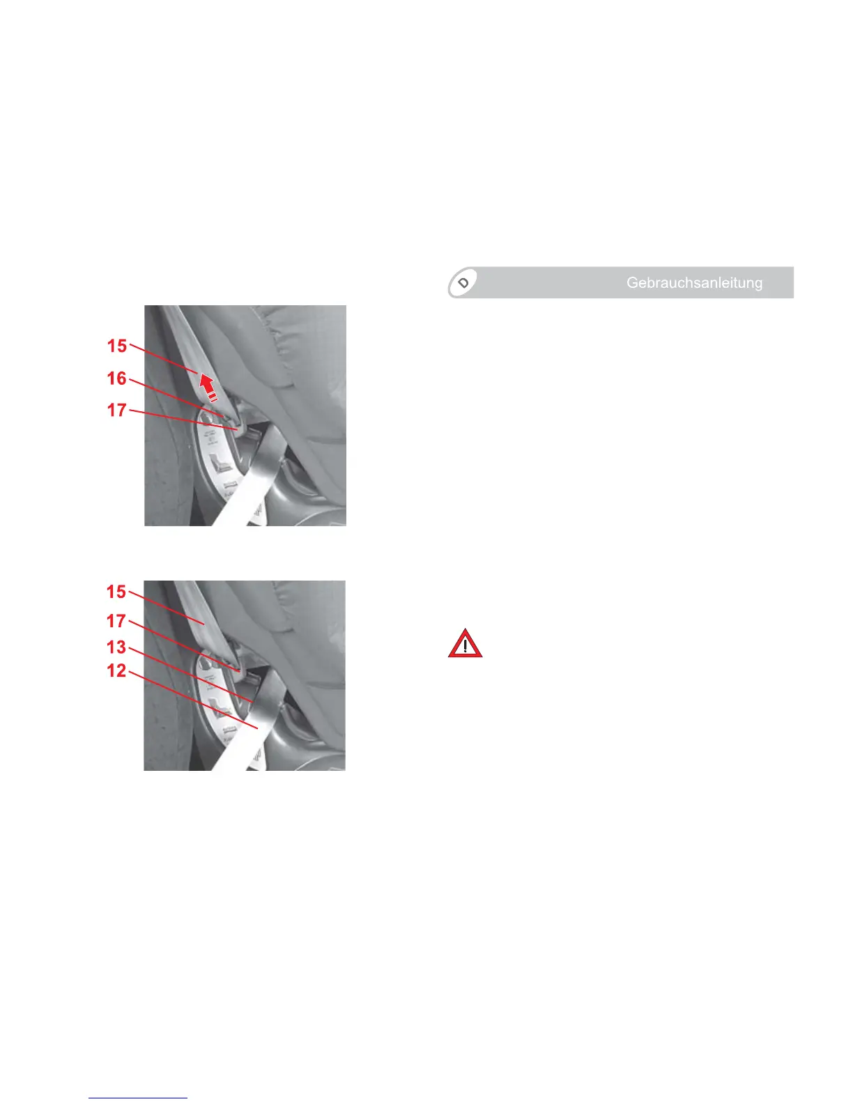 Þ Drücken Sie die Taste 16 der roten Gurtklemme,
