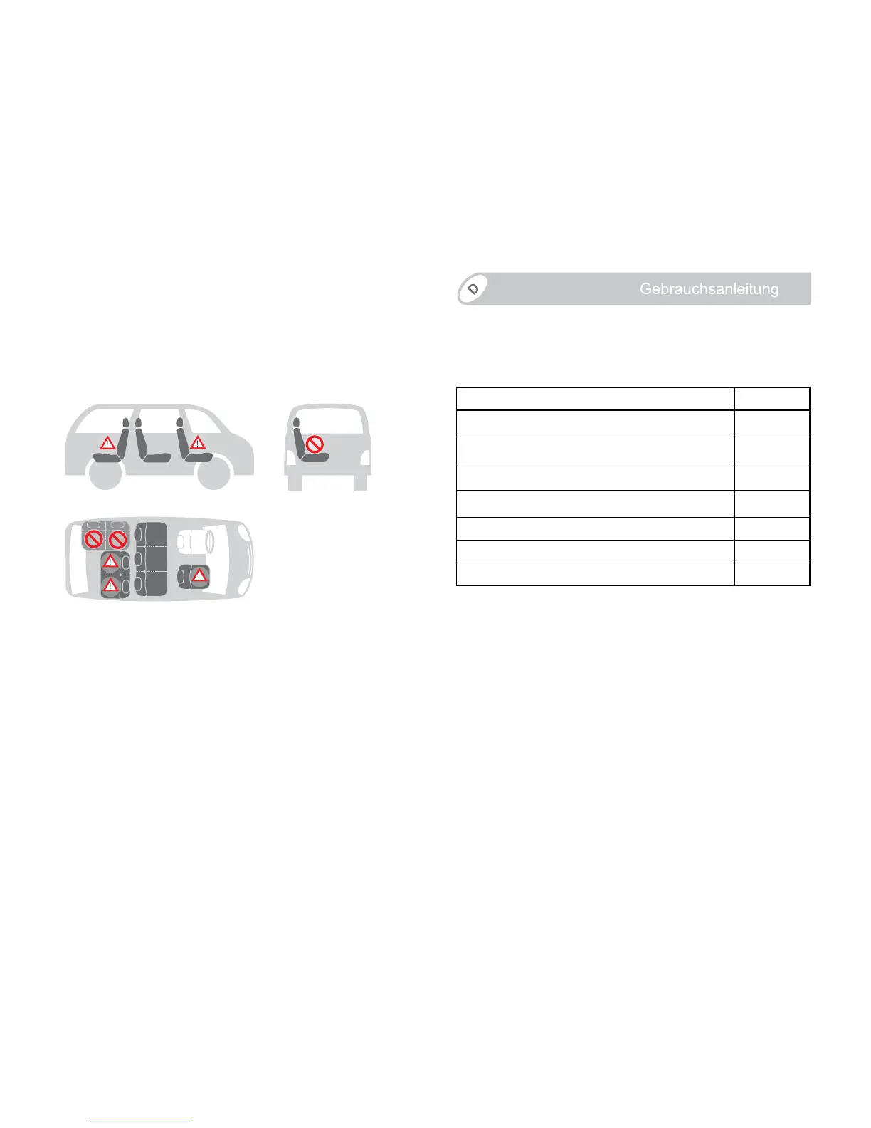 Transport von Erwachsenen zugelassen ist. Es darf kein Airbag
