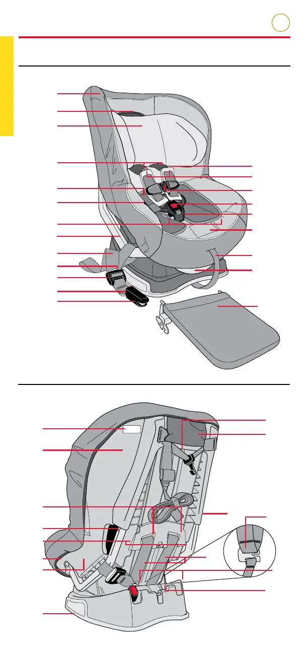 Britax EMBLEM - Child Seat Features; Front Component Diagram; Rear Component Diagram