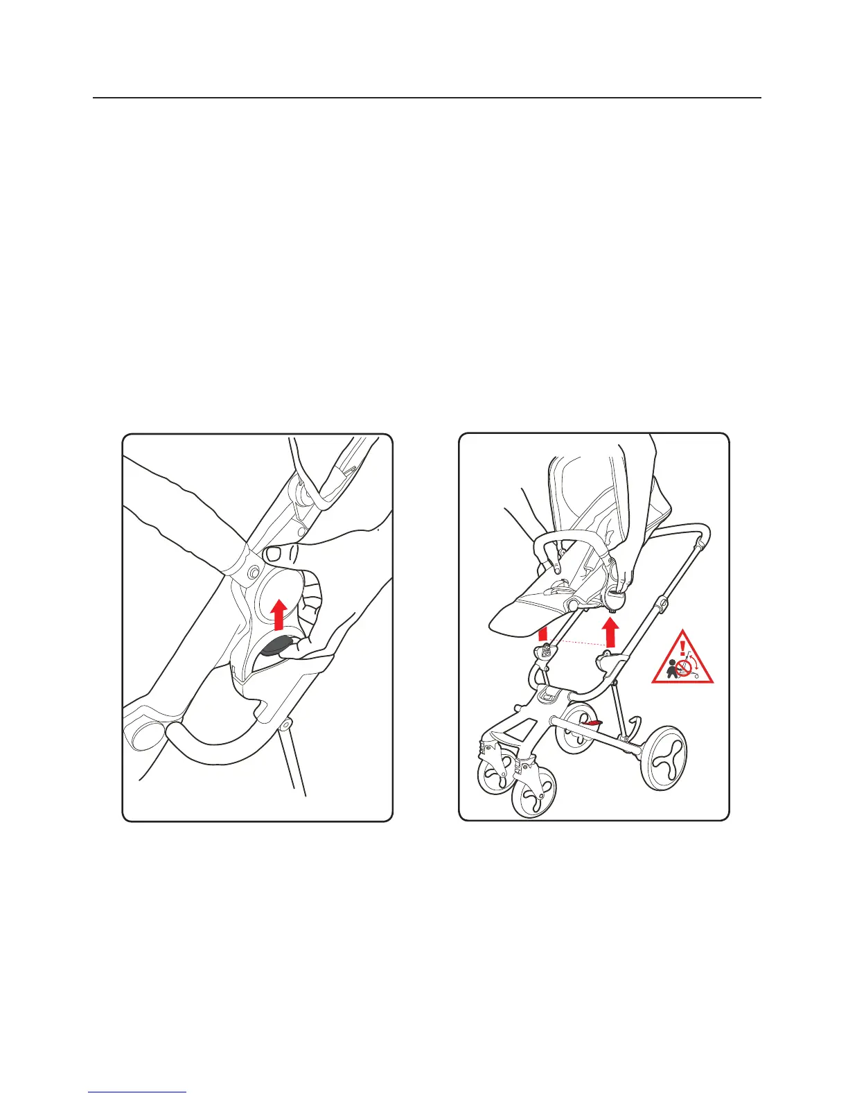 ALWAYS REMOVE YOUR CHILD FROM THE STROLLER SEAT BEFORE