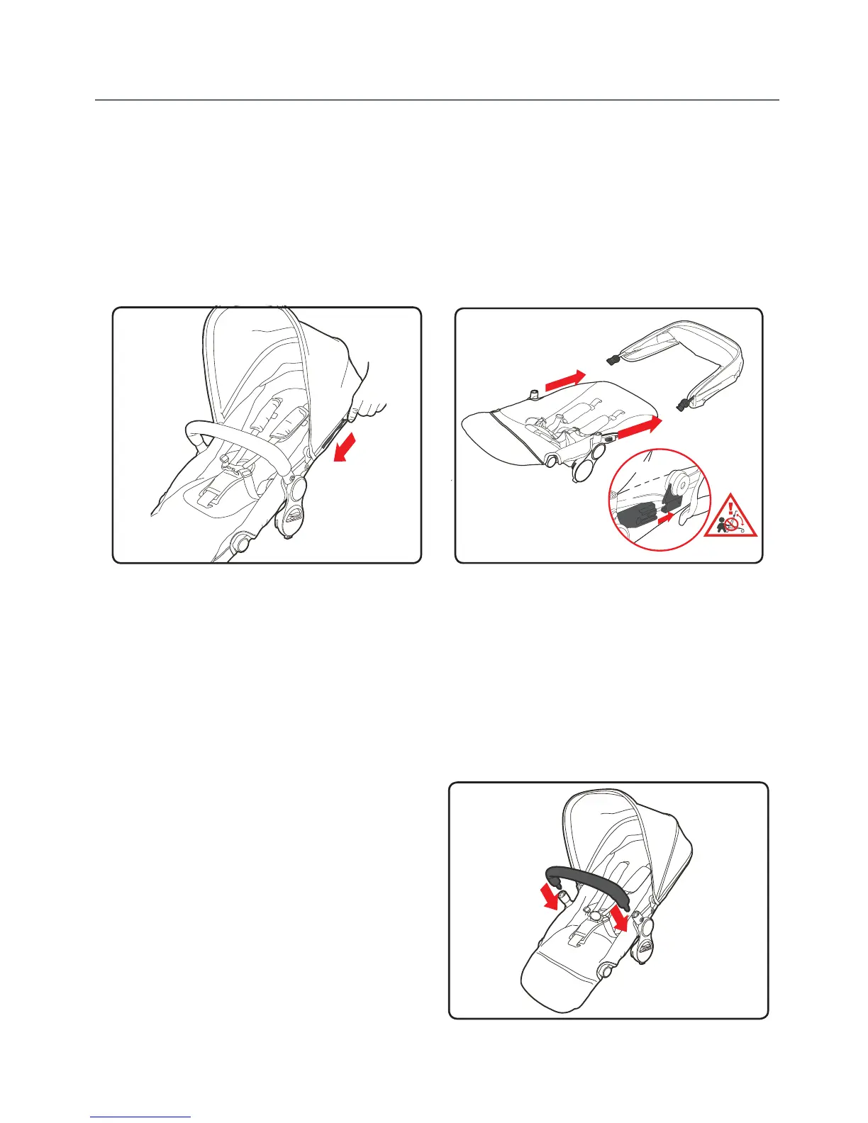 WHEN A CHILD IS IN THE STROLLER, KEEP THE ARM BAR ATTACHED TO