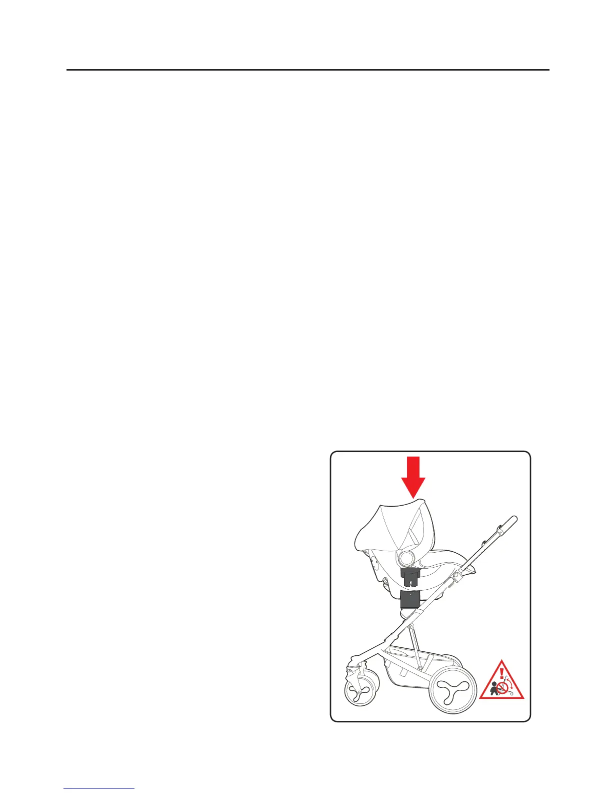 in the upper position on the stroller frame. The stroller frame will not fold