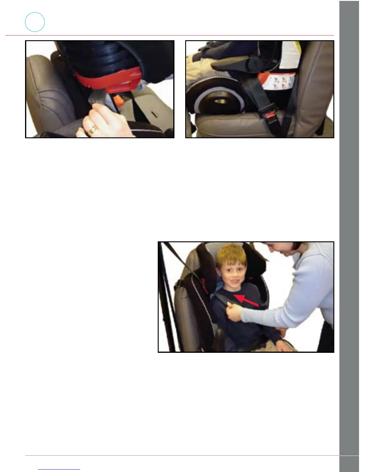 Lap part of the vehicle belt is routed low across the child’s hips 9