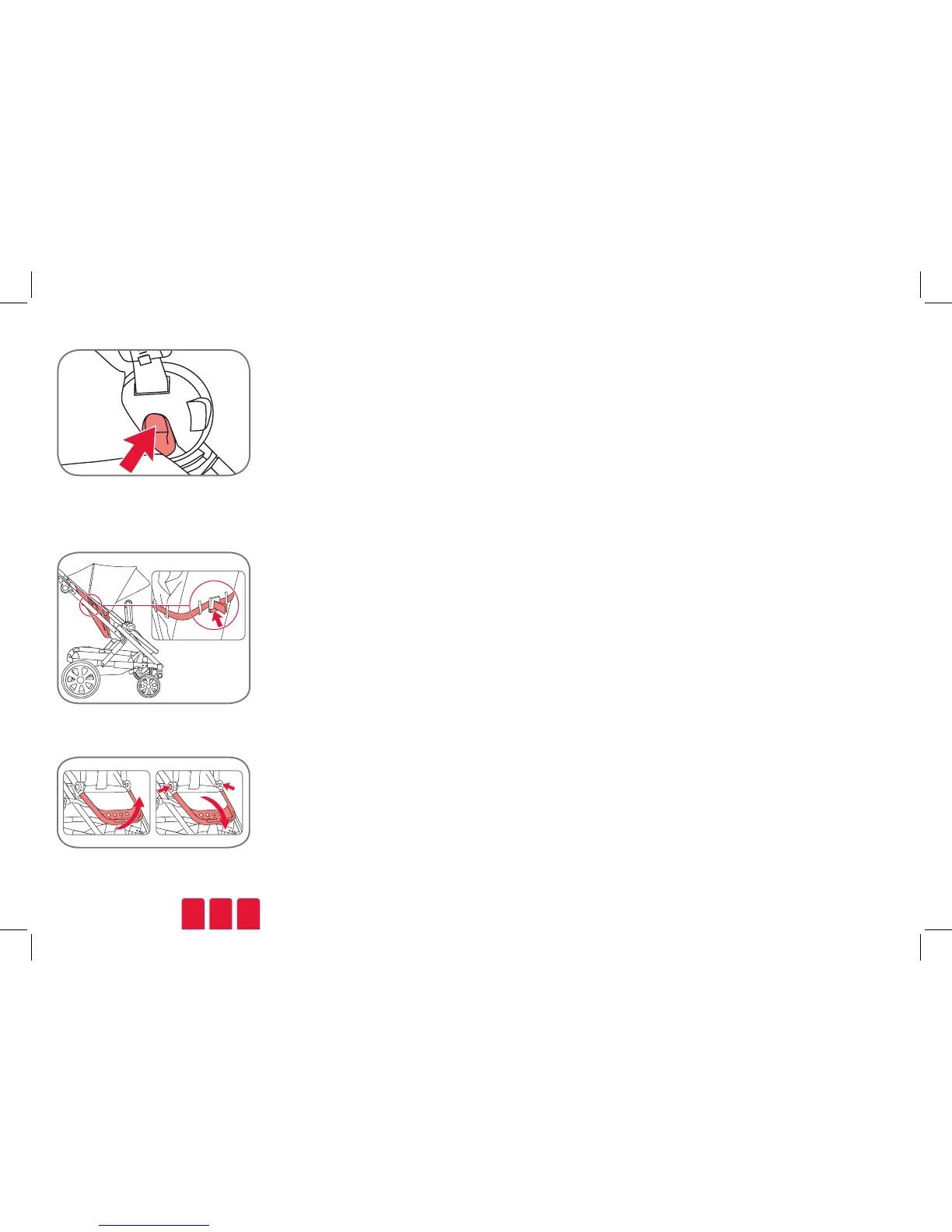 O apoio dos pés tem 3 posições.