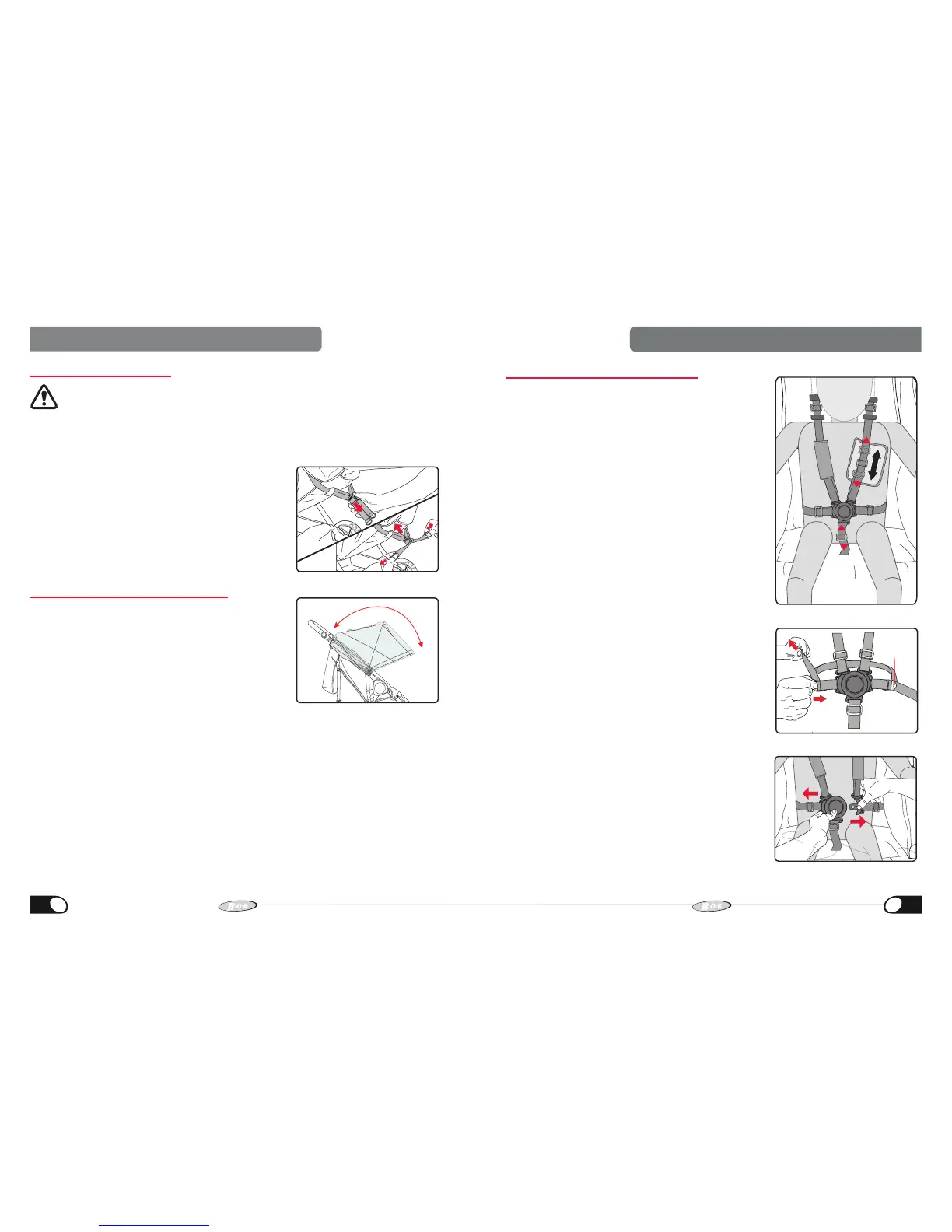 1. To adjust the canopy, open by pulling