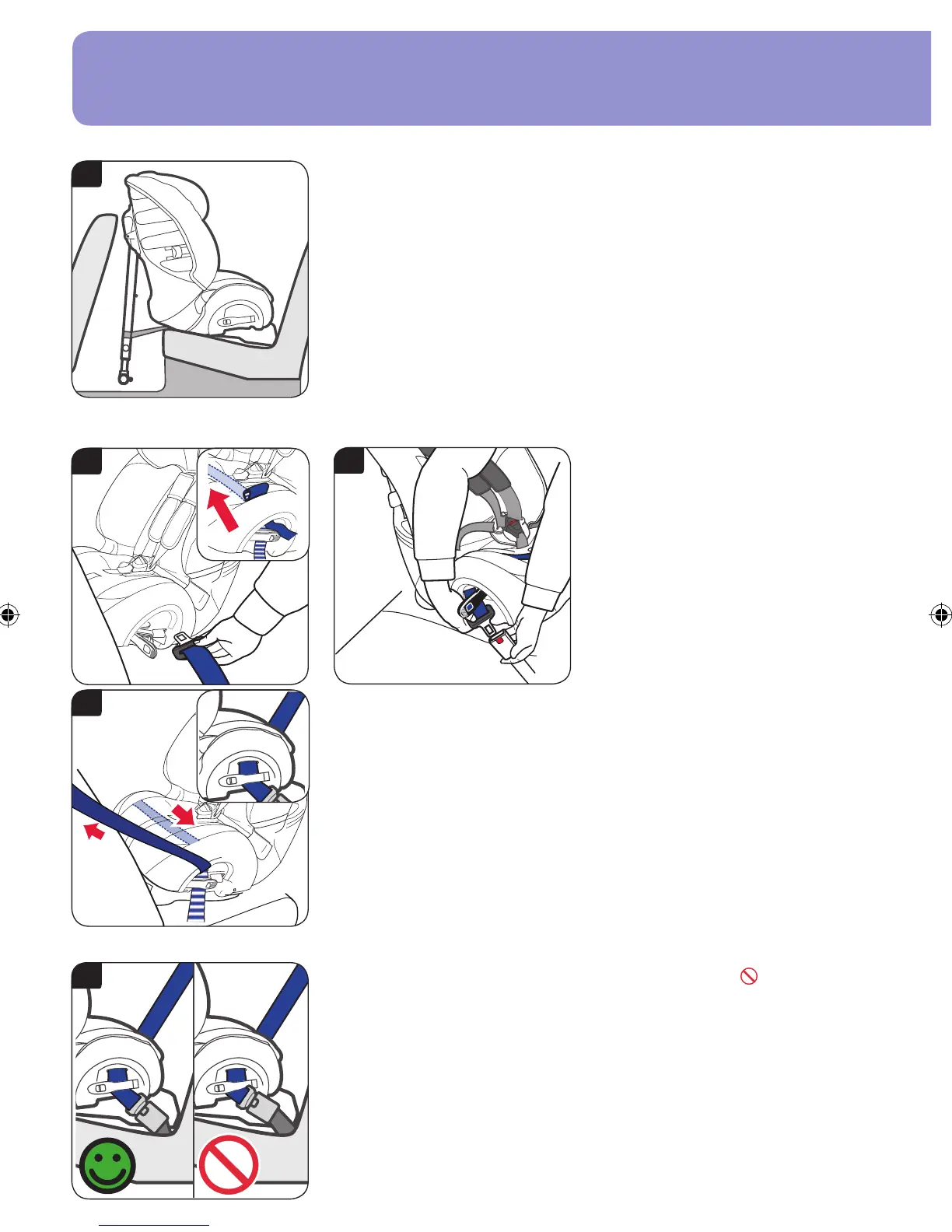 Træk sikkerhedsselen igennem autostolen, indtil selen er strammet til, og sørg