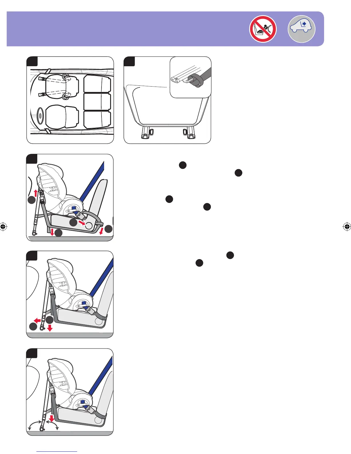 För in spännändarna under sätet. Kontrollera att stödfästena är vända framåt