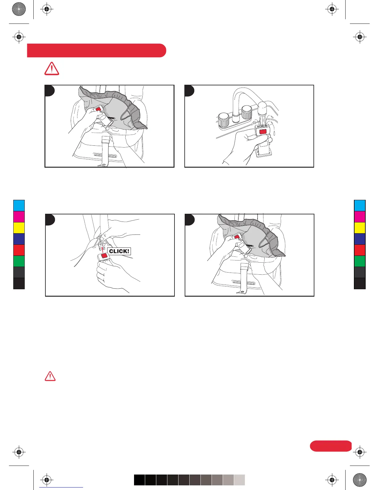 sure the red buckle button faces away from your child