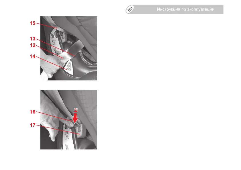 Нажмите кнопку 16 красной пряжки ремня 17,
